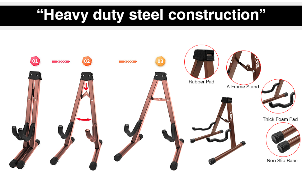 Built from heavy duty metal to be sturdy and stable, our stand securely holds your guitar without tipping over. It’s designed to last.