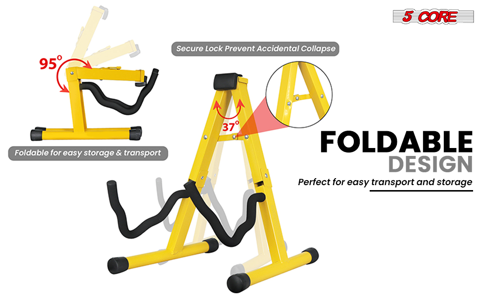 Anti-slip rubberized feet ensure your instrument stays secure. The guitar stand is easy to use, requiring no special tools for setup, and collapses for convenient portability. Designed for longevity with anti-corrosion paint, this A frame guitar holder provides a secure cradle arm to hold any guitar size. Perfect for musicians seeking a reliable and portable solution to safely display and store their instruments.