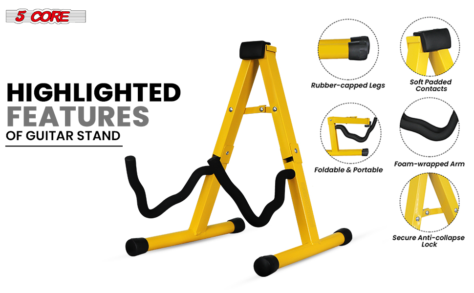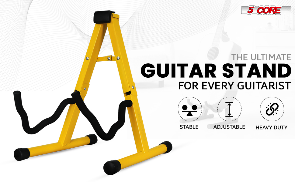 STRONG & LONG LASTING CRADLE ARM A-FRAME STRUCTURE EASY TO USE Built from heavy duty metal to be sturdy and stable, our stand securely holds your guitar without tipping over. It’s designed to last. The unique shape of the arms holds large or small guitars safely. It increases the instrument compatibility significantly. Designed to match the body and weight of the guitar, providing enhanced stability and suitability for the instrument. Quick and simple setup. Adjustments are easy to make, so you can get your guitar ready in no time.