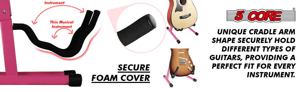 The unique shape of the arms holds large or small guitars safely. It increases the instrument compatibility significantly.