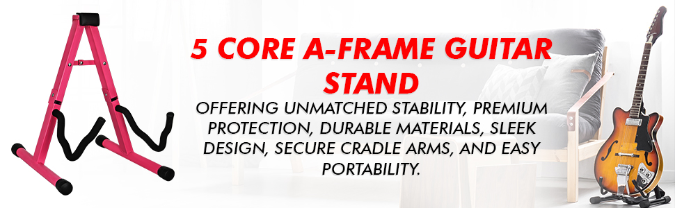 5 Core Guitar Stand 2PC A Frame W Soft Foam Arm Non Slip Rubber For Acoustic Electric Bass