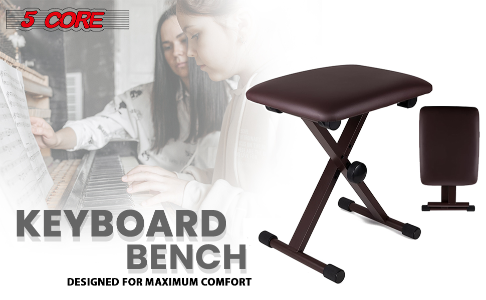 5 Core Keyboard Bench 2 Inch Padded Cushioned Piano Stool Height Adjustable 19" Guitar Seat Portable