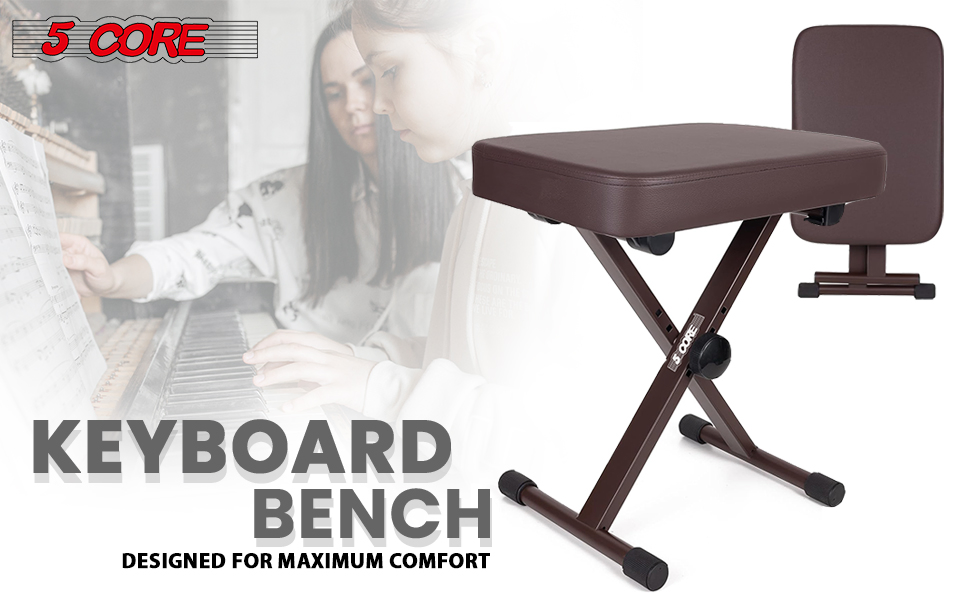 5 Core Keyboard Bench 3 Inch Padded Cushioned Piano Stool Height Adjustable Guitar Seat Heavy Duty Folding Portable Musician Chair W Nonslip Rubber Feet Brown - KBB BR HD