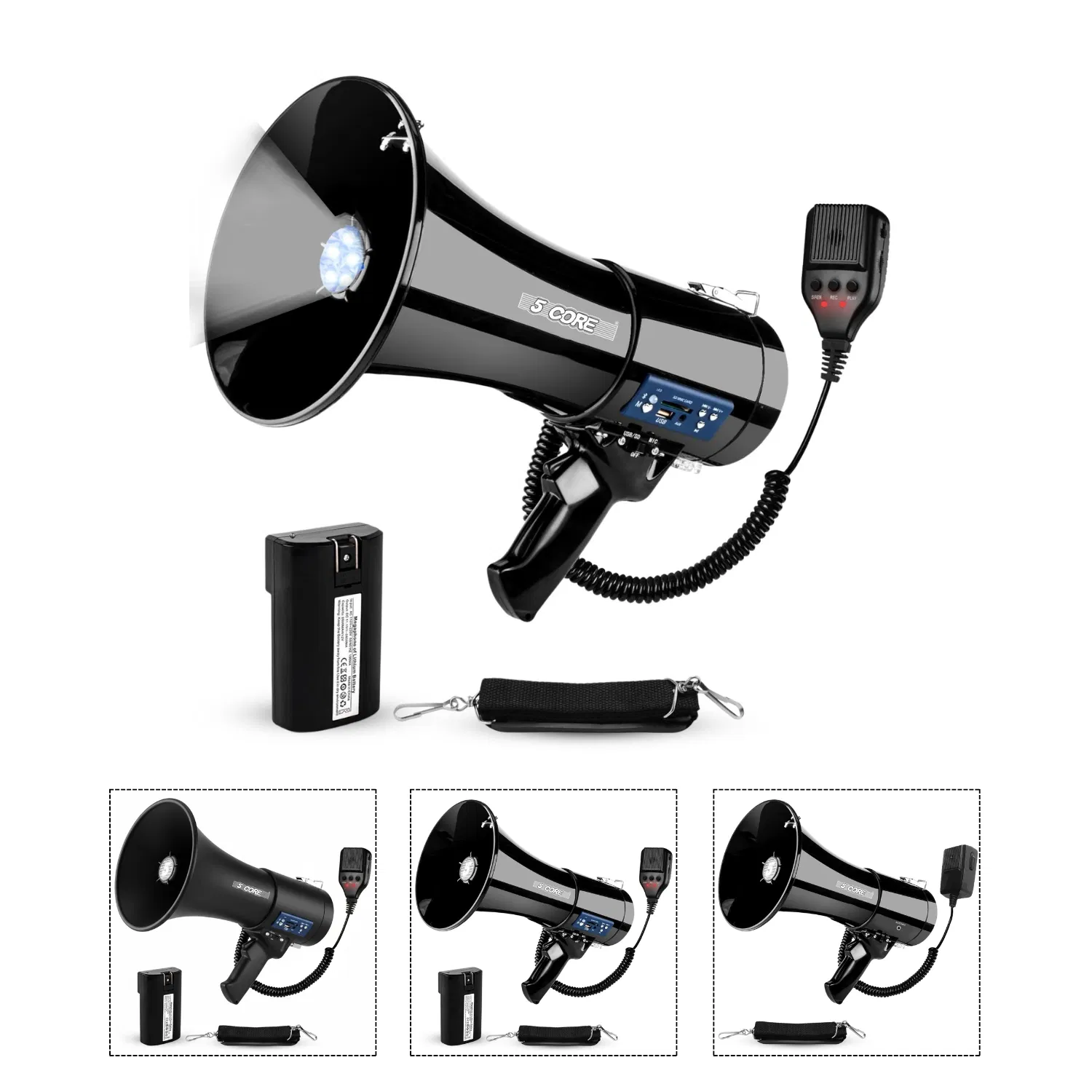5 Core Megaphone 50W Bluetooth Rechargeable Portable Bullhorn 1100 Yards W Siren