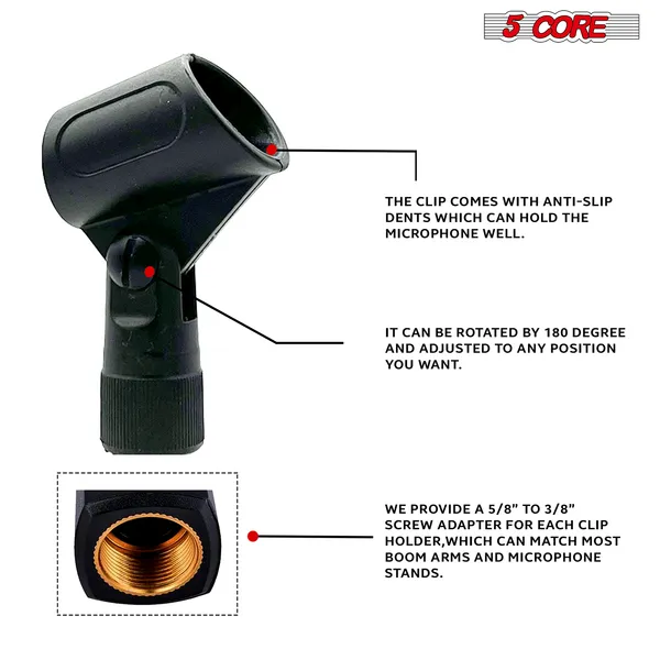 5 Core Microphone Clip Holder 6 Pieces Multi Pack With Screw Adapters 5/8 To 3/8 Inch