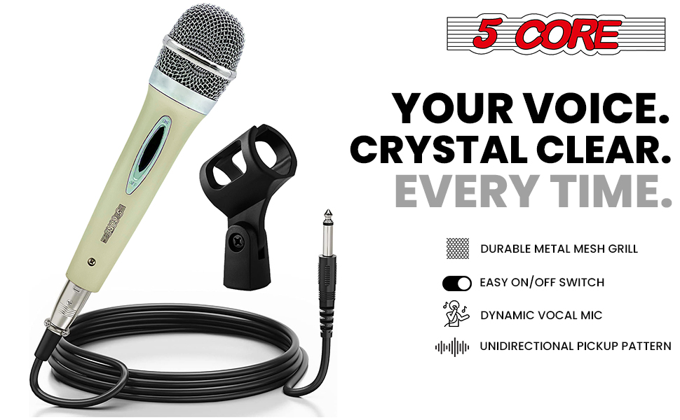 5 CORE Microphone Dynamic Vocal Handheld Mic Cardioid Unidirectional Microfono W On Off Switch + XLR Audio Cable For Singing Karaoke Public Speaking & Parties - PM 286 WH