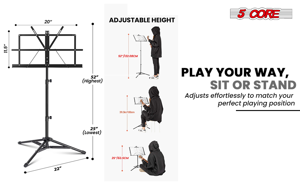 The guitar music stand allows for precise height adjustments, accommodating a variety of playing positions and ensuring optimal comfort.