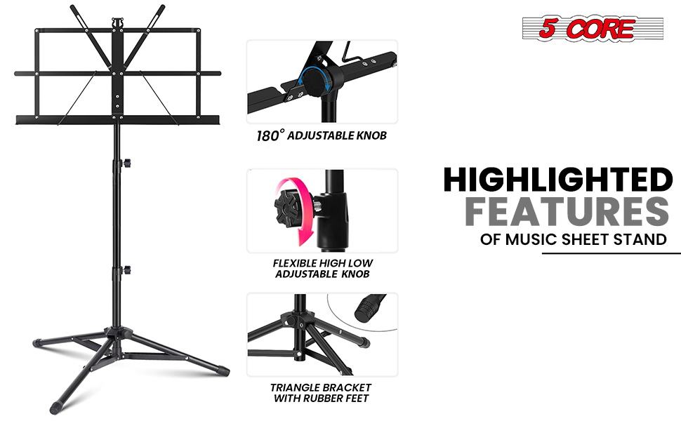 5 Core Music Stand Adjustable Desktop Book Stands Portable Sheet Holder All Metal Foldable Bookstand - MUS FLD BLK