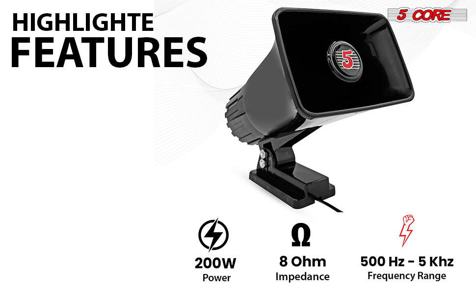 5 Core PA Horn 200W Loud Speaker 6" Bull Horn Loud Audio 8Ohm All Weather Indoor Outdoor Use