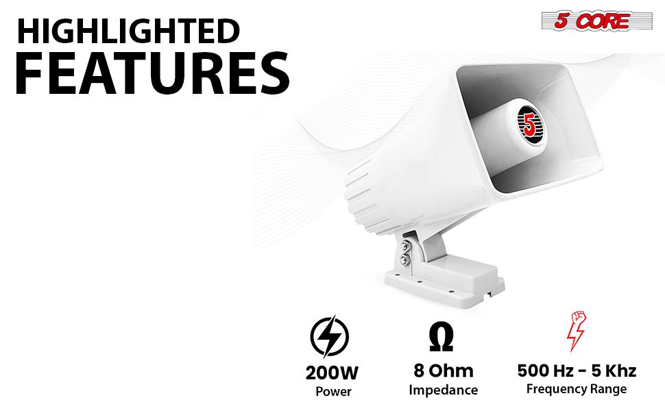 5 Core PA Horn 200W Loud Speaker Pair 6" Bull Horn Loud Audio 8Ohm All Weather Indoor Outdoor Use