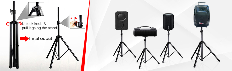 The tripod floor stand design with anti slip rubber pads on the legs offer 100 lbs capacity, can support large speakers.