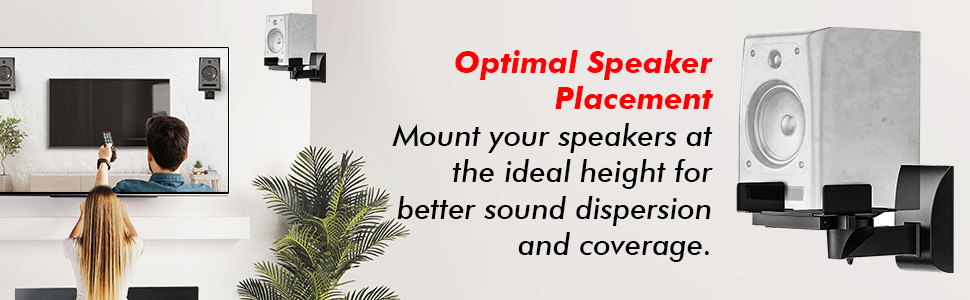 AESTHETIC DESIGN SAFETY FEATURES SWIVEL LEFT OR RIGHT DURABLE CONSTRUCTION Our mounts are designed to complement any room décor, seamlessly blending with your speaker style. Our mounts come with secure locking mechanisms to prevent accidental falls or shifts, keeping your speakers safe. The surround sound speaker mounts can swivel your speaker left and right to change sound direction towards the listener's ears. Crafted from durable materials metal, our mounts ensure longevity and stability for your speakers.