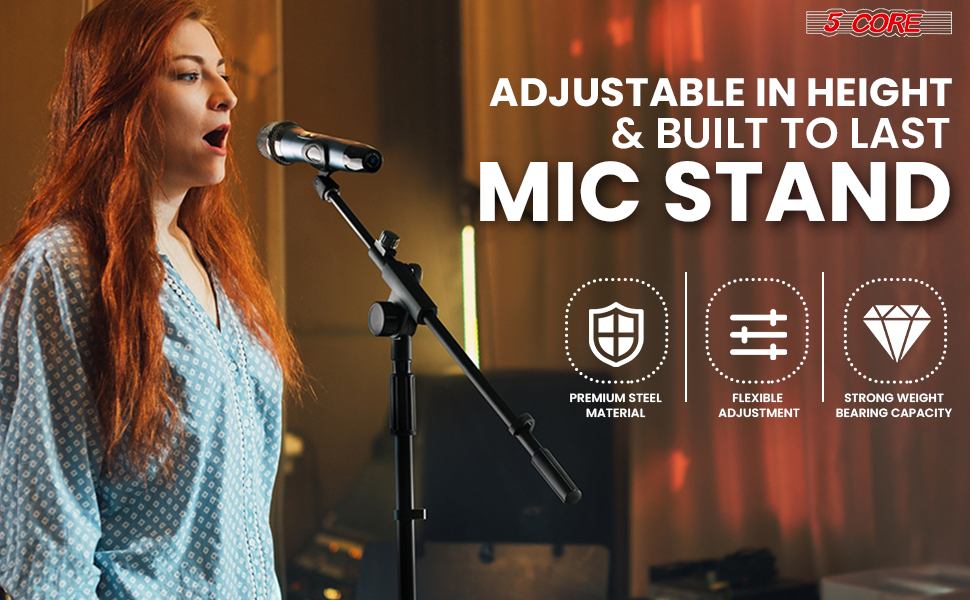 5 Core Tripod Mic Stand Floor 2Pcs Adjustable 18 To 72 Inches Sturdy Boom Arm Holder Microphone Stands Pedestal Para Microfono For Singing