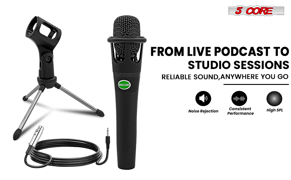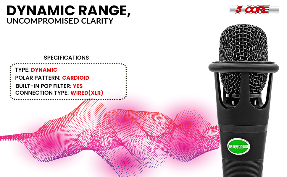 5 CORE XLR Dynamic Metal Mic Audio, Ideal For Singing, Captures Source Sound, Sturdy & Durable, Includes XLR Cable - MIC CROWN