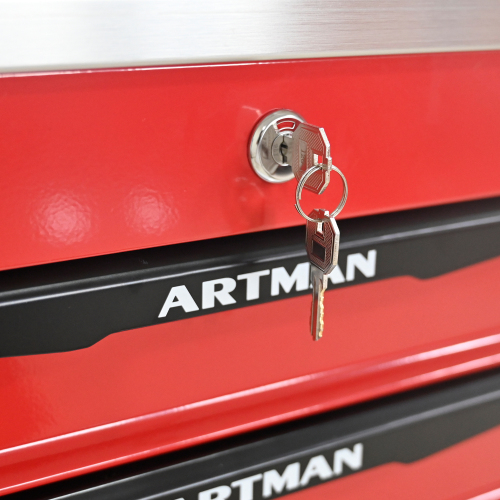 With swivel casters could maneuver easily around work area. The wheels have locking mechanisms to prevent the tool cabinet from moving around on its own while in use.