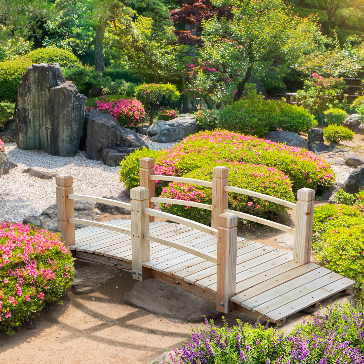 - Solid Construction: This garden bridge is stable and suitable for daily use. It is made with natural fir wood and a varnish finish to provide a rustic look and to help fight water, rotting, cracking and splitting.