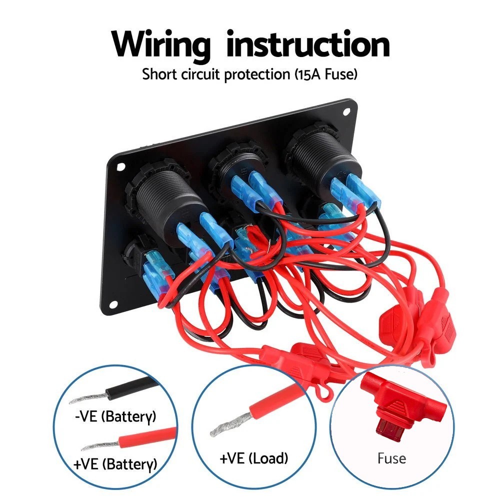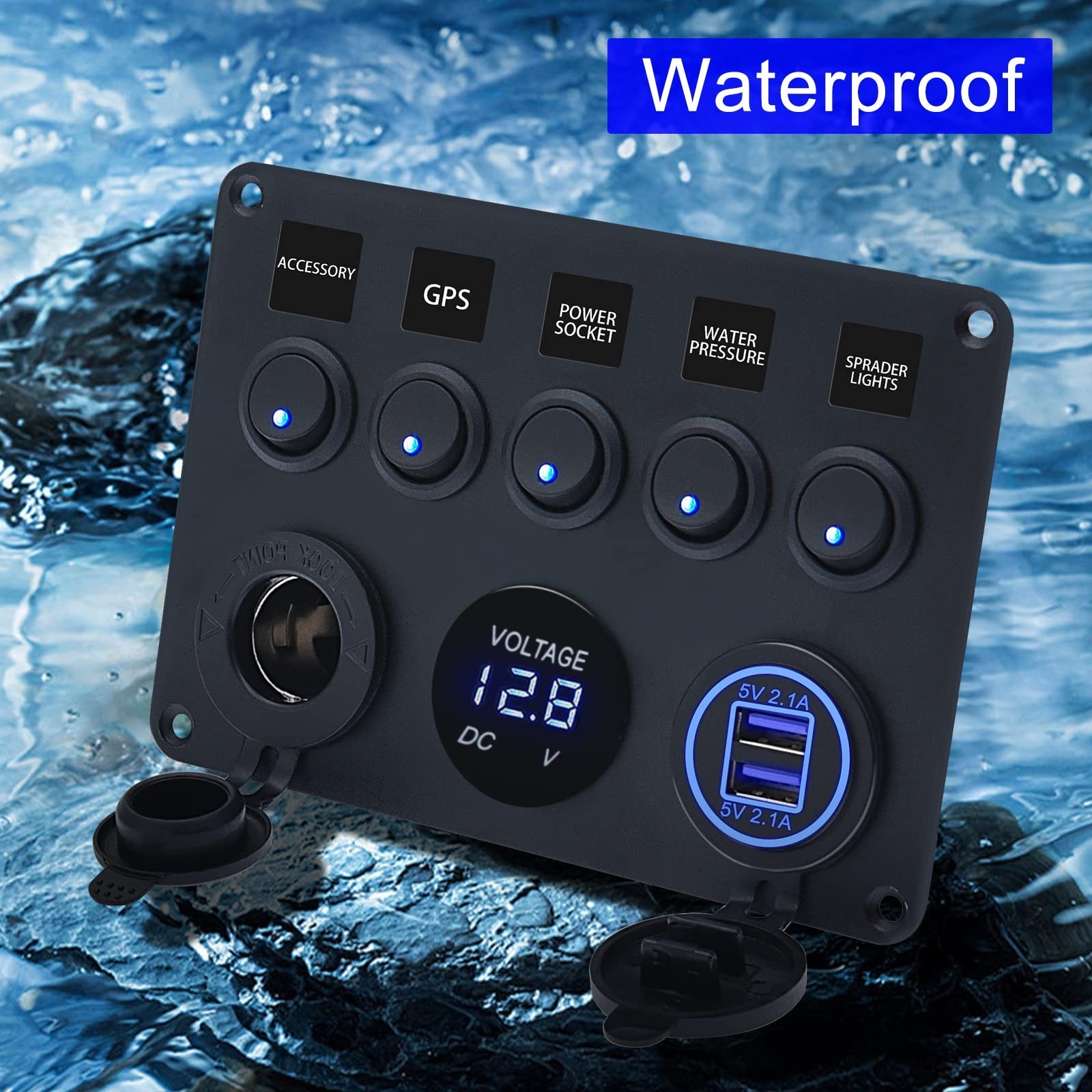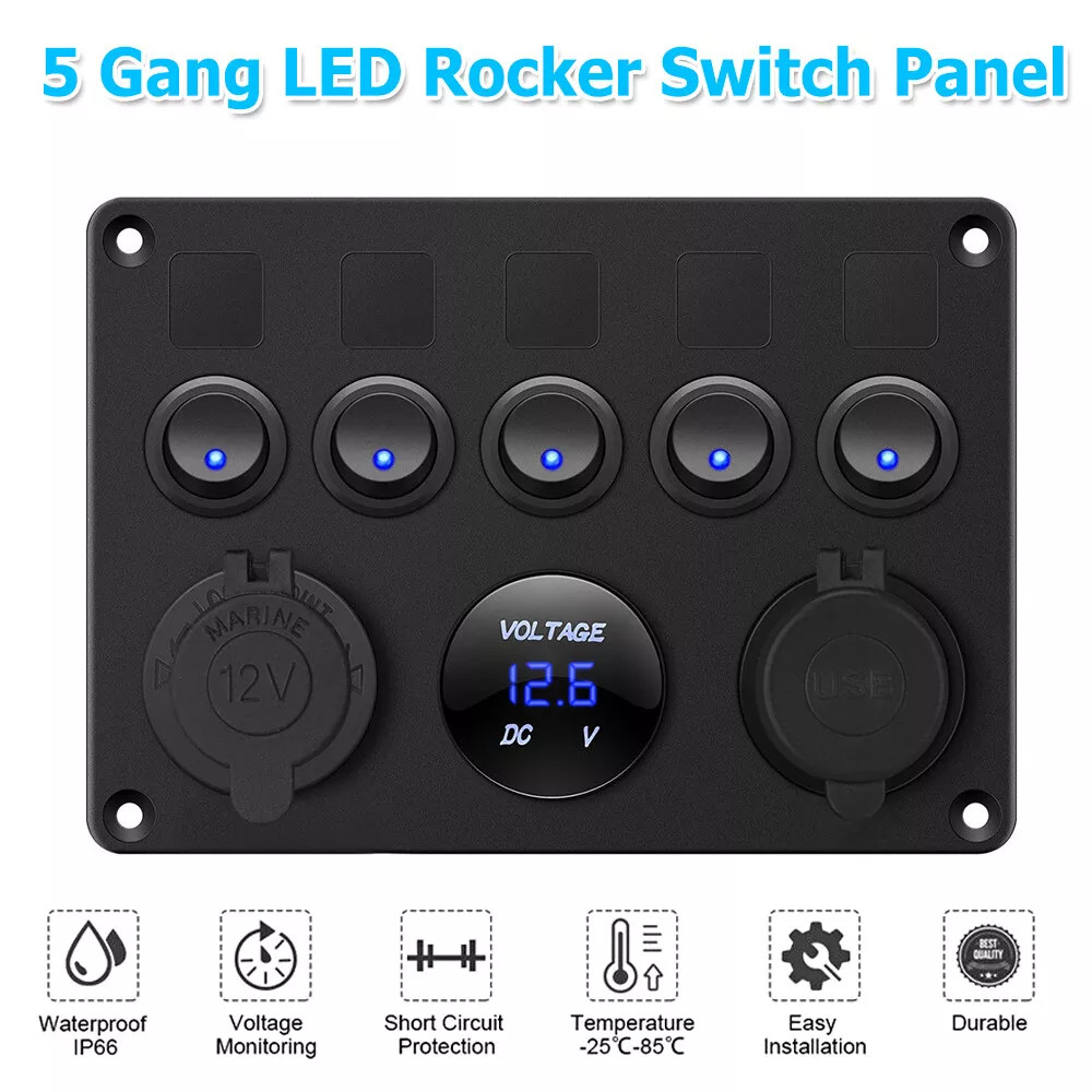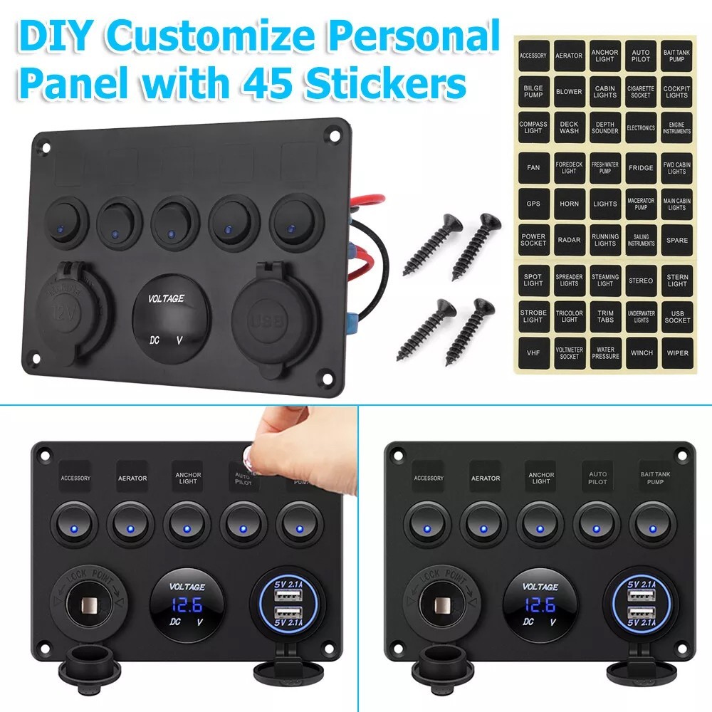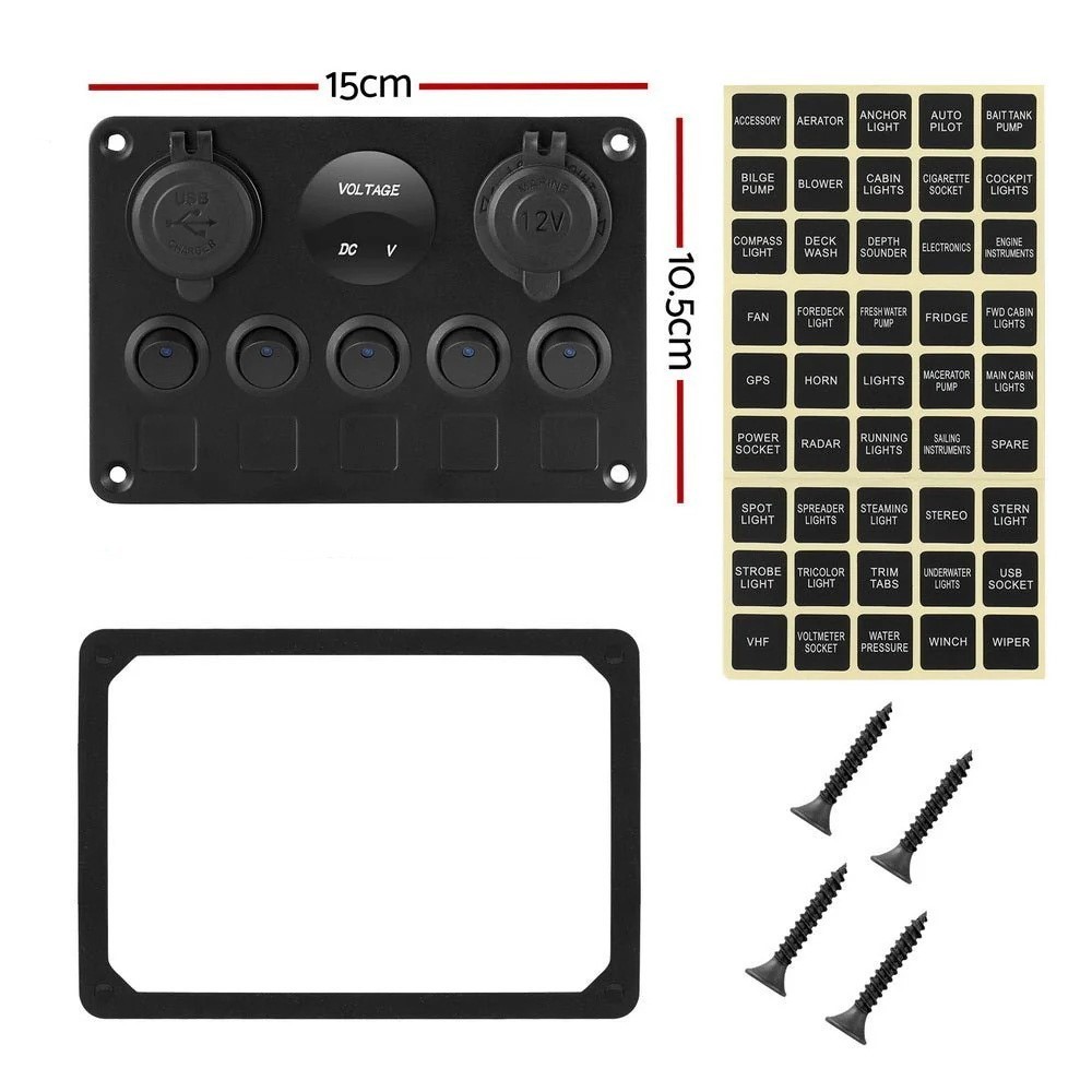 Multi-Functions Panel; Dual USB Socket + Voltmeter + 12V Outlet + 5 Toggle Switches