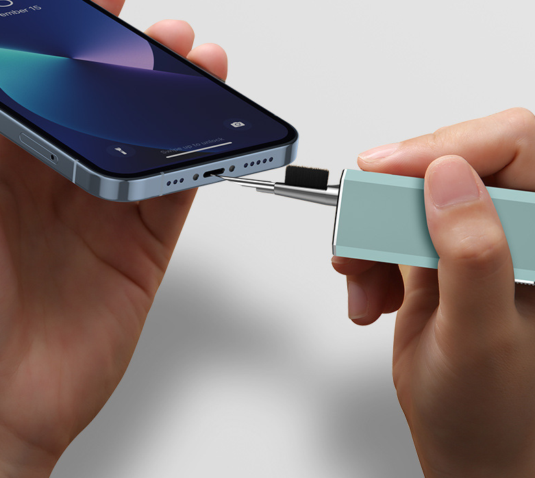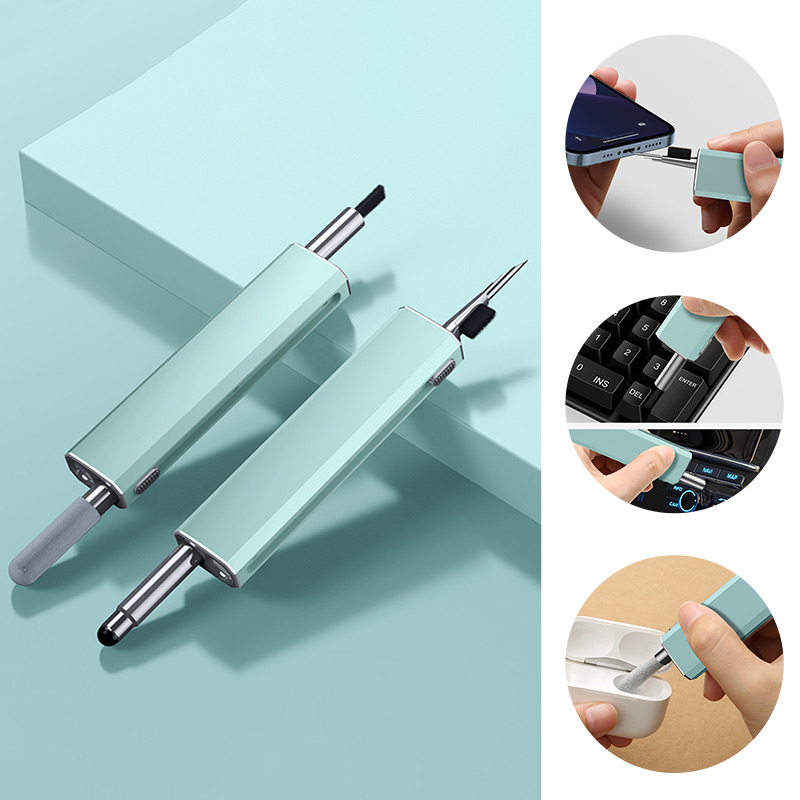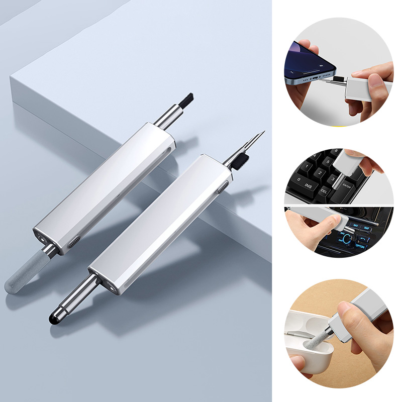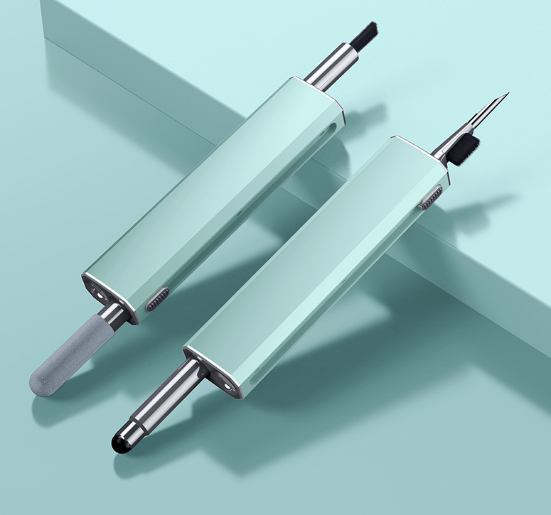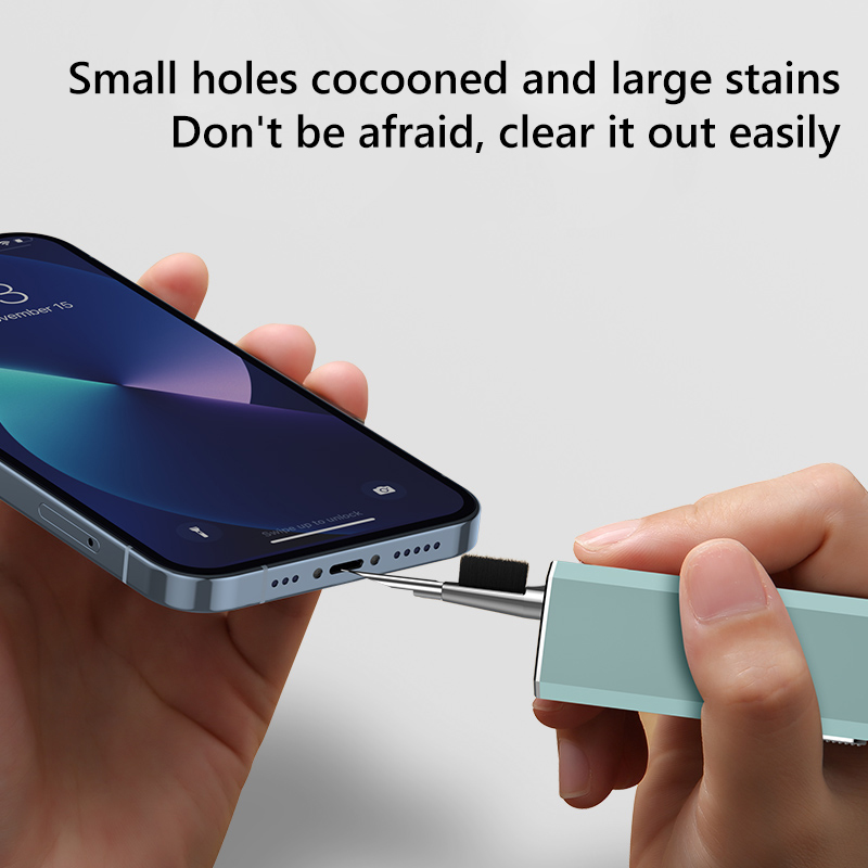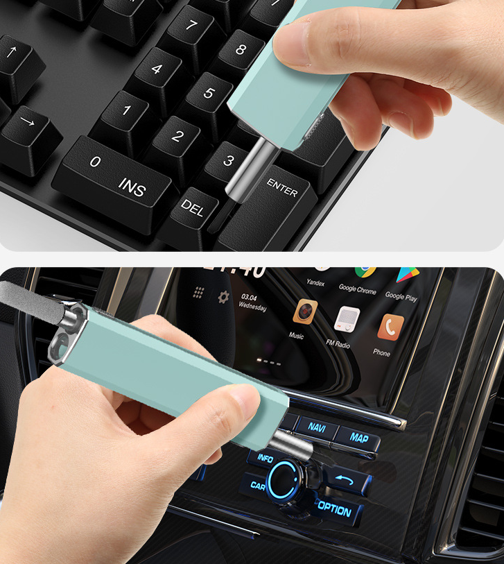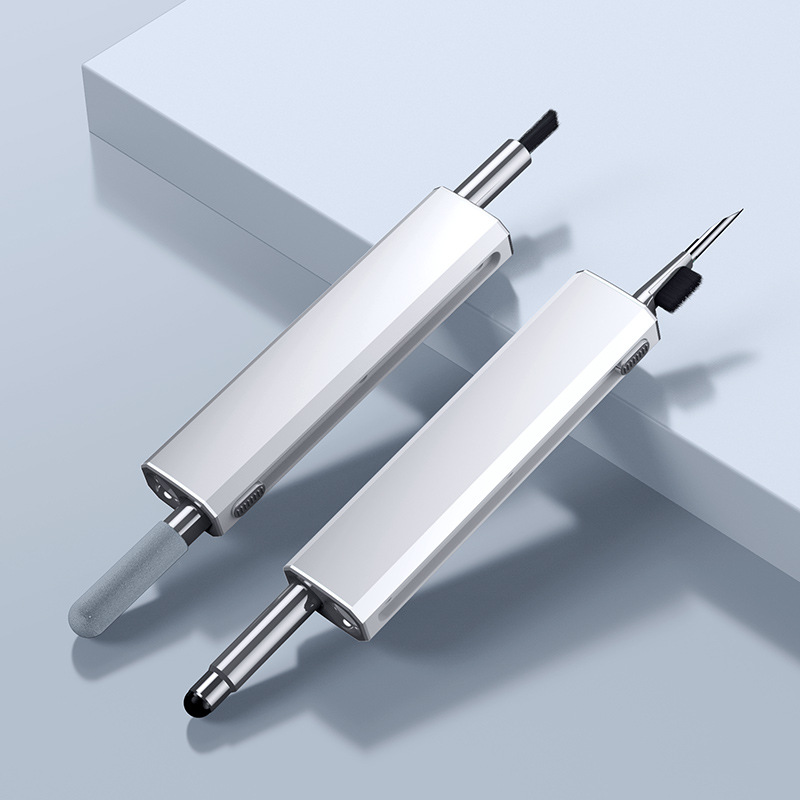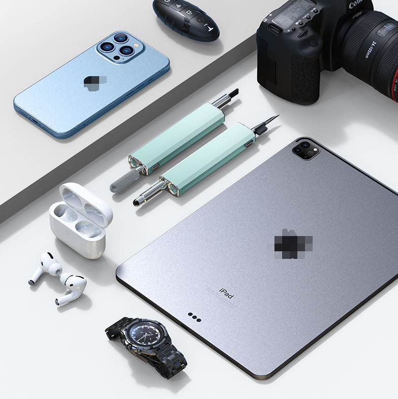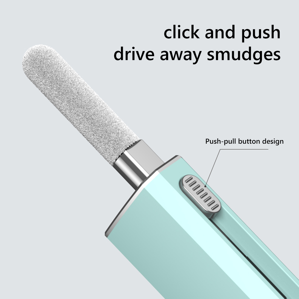 2. Retractable design: Hidden double-head design, sliding switch, one end of the multi-functional cleaning set is a brush and nib, and the other end is a flocking sponge stick, capacitive pen and other accessories. It can be used after launch, which is convenient and worry-free, and there is no need to worry about losing it.
