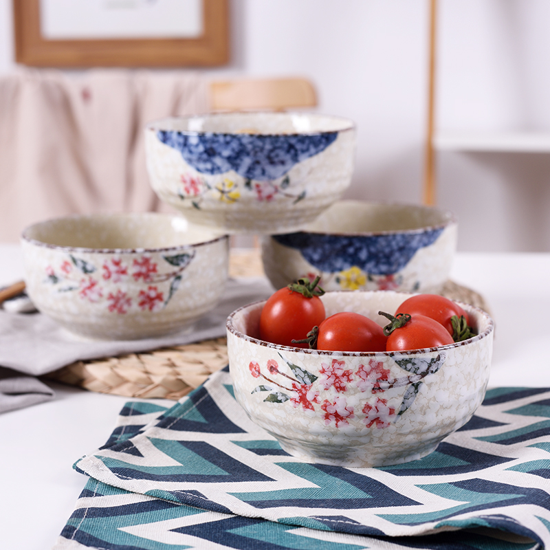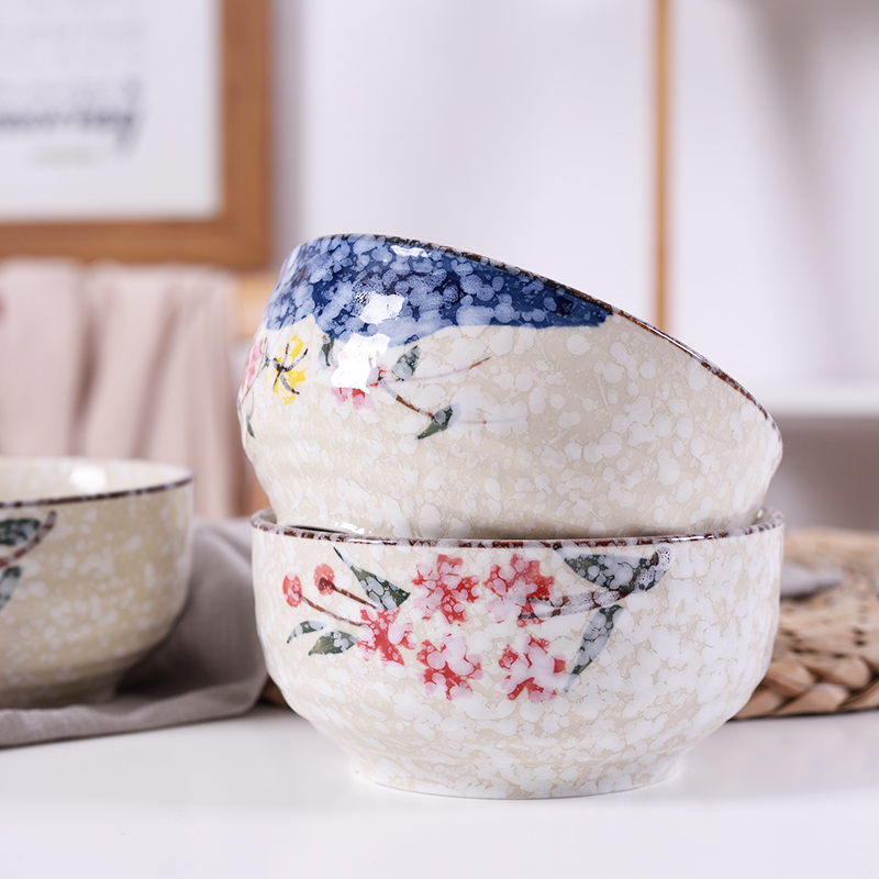 Color classification: 5-inch horizontal pattern bowl-jade snow Blue Heart, 5-inch horizontal pattern bowl-red plum love snow