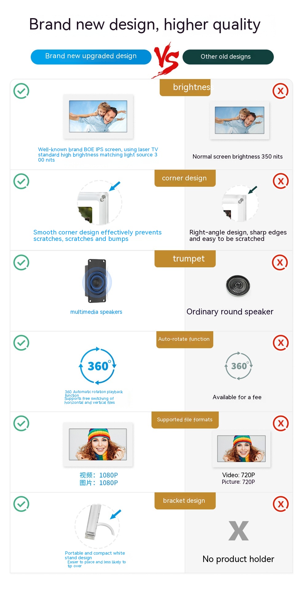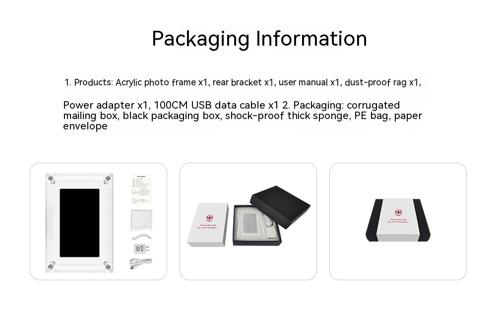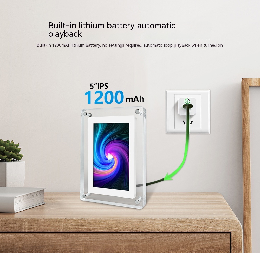 Features: transparent material, multimedia stereo speaker, automatic rotation playback, plug-and-play mode/battery independent playback mode