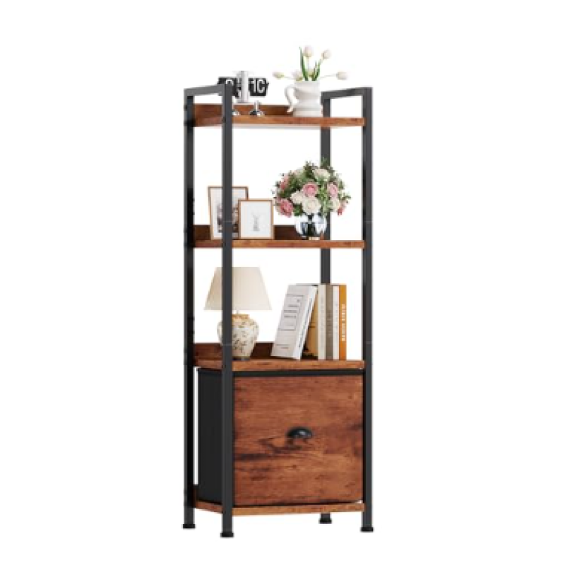 Drawer + Open Dual Storage, Concealed or Revealed as Desired: The bottom is equipped with a concealed pull-out drawer, making it more convenient for storing private items; the open bookshelf layers and drawer design complement each other, allowing for easy management of various items in living rooms, study rooms, offices, etc., with full practicality.
