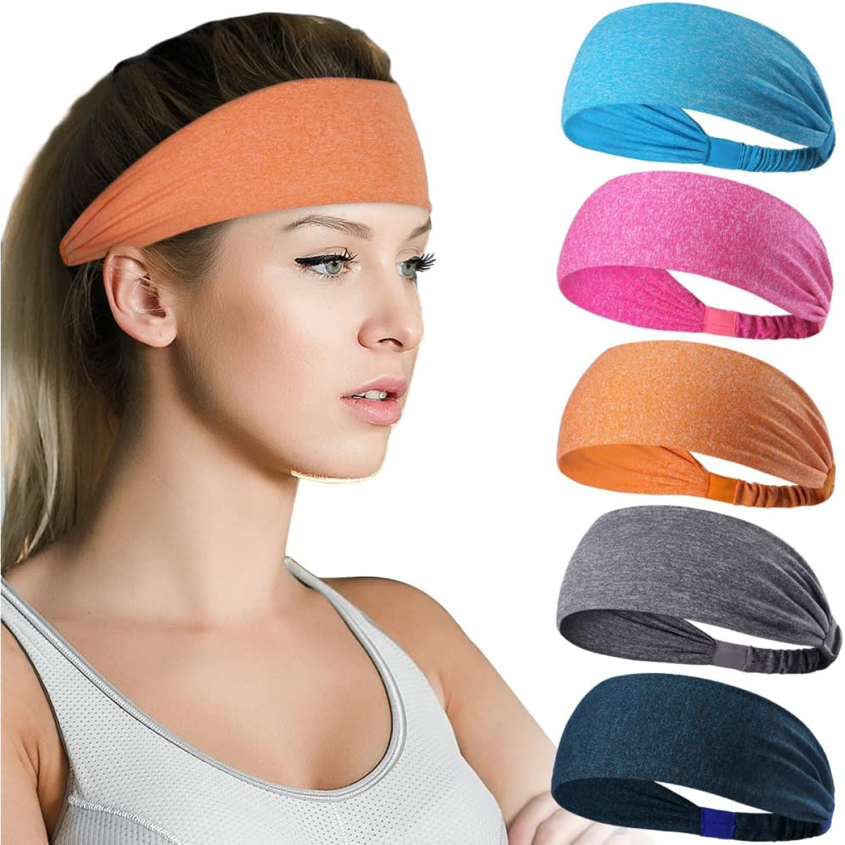 5 Pack Beister Sports Headbands For Men & Women Wicking Sweatbands, Elastic Non Slip Sweat Bands Athletic Workout Fashion Wide Hair Bands For Running Cycling Basketball Yoga