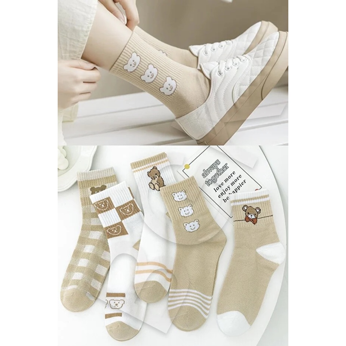 This 5 pair patterned women sock set is designed for everyday comfort. The soft fabric offers a gentle and flexible feel, making it suitable for long hours of wear. The assorted patterns provide a simple and stylish look that matches casual and daily outfits. Suitable for home, work, or outdoor use. A practical choice for women who prefer comfort and ease in daily wear.