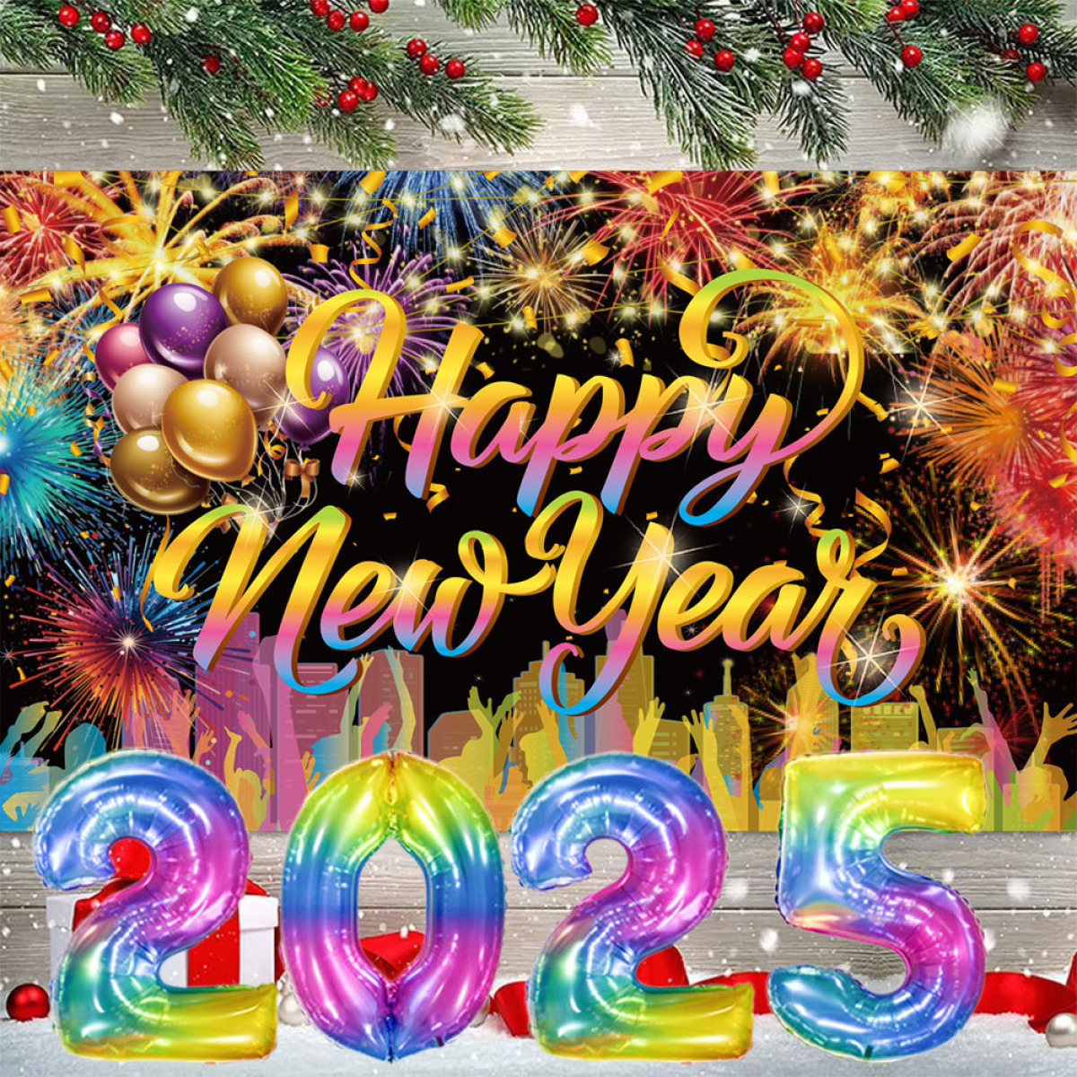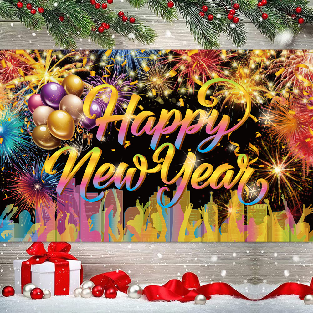 5 Pcs Happy New Year Party Backdrop 32 Inch Balloons Set With Rope Happy New Year Decorations Colorful Firework New Years Backdrop For New Years Eve Party Supplies