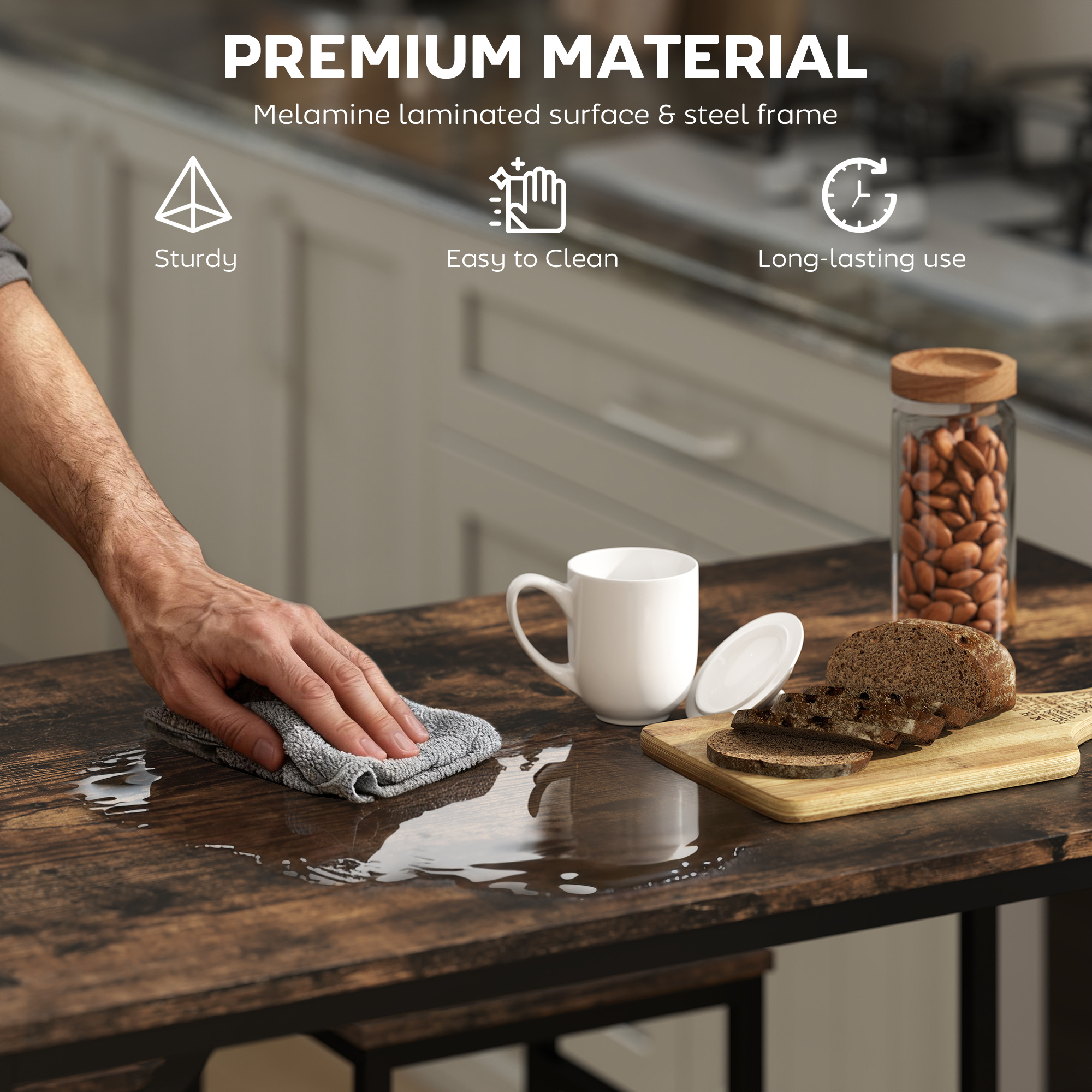 Create a beautiful interior relaxing space with this stylish and contemporary 5-piece bar table set. It will surely satisfy your demands for beauty and practicality. This set also saves space when not in use by allowing the chairs to tuck directly beneath the table, so it's perfect for an apartment or small home. Seat four guests around this cozy bar table set or break out a deck of cards for a fun