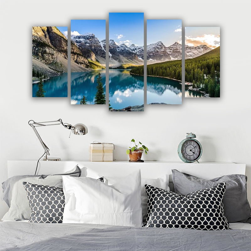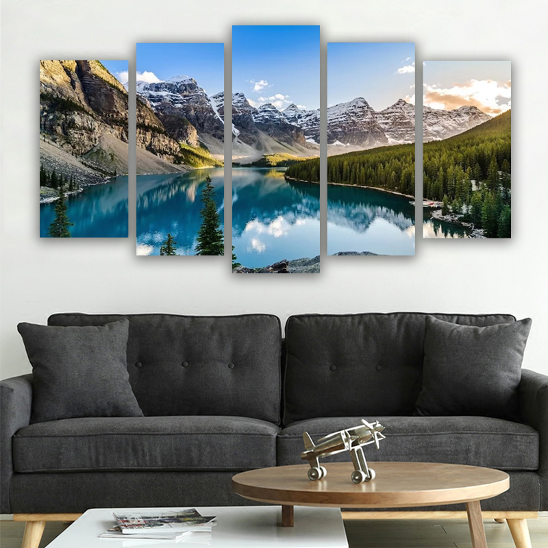 5 Piece Canvas Wall Arts Moraine Lake And Mountain Living Room Modular Modern Picture Home Decor
