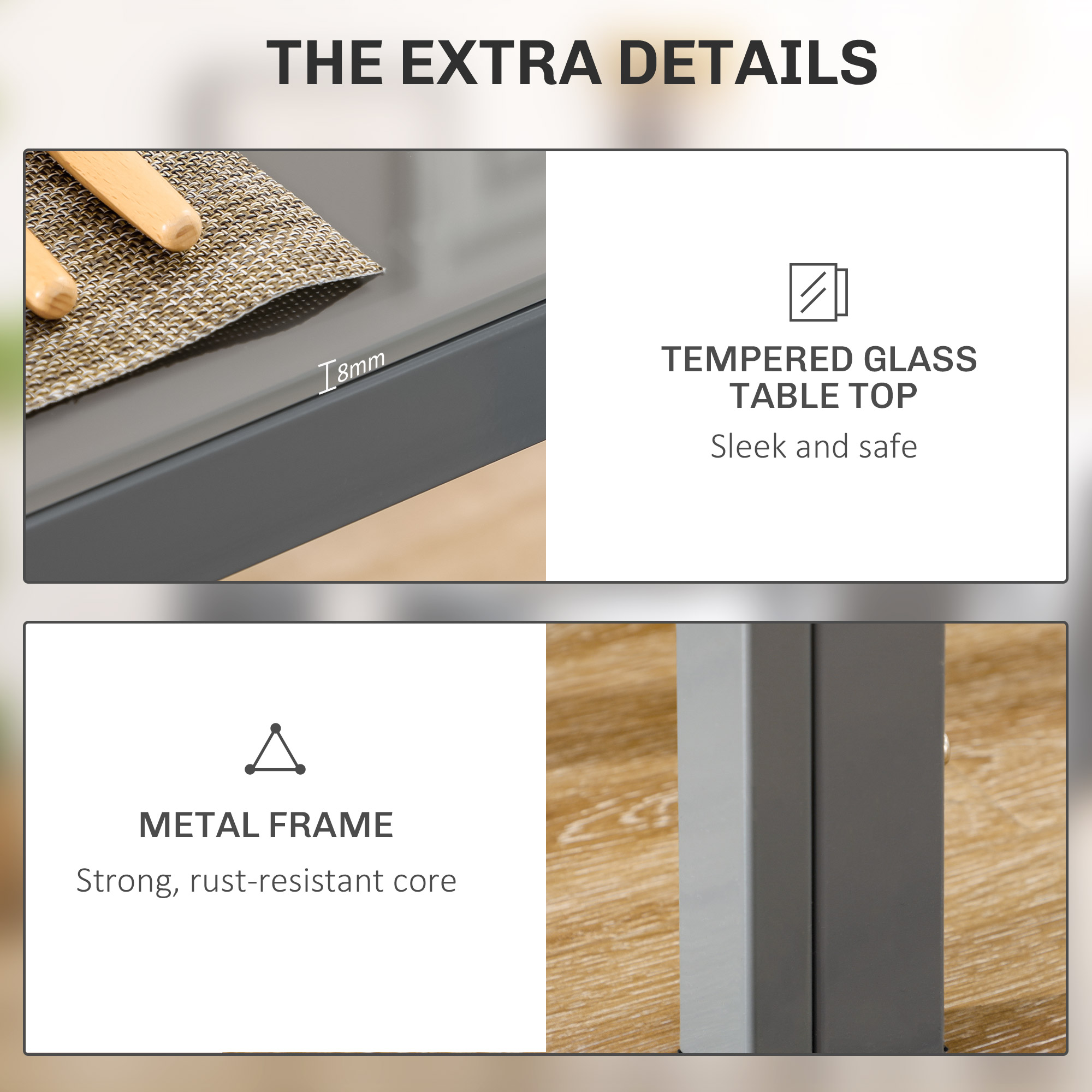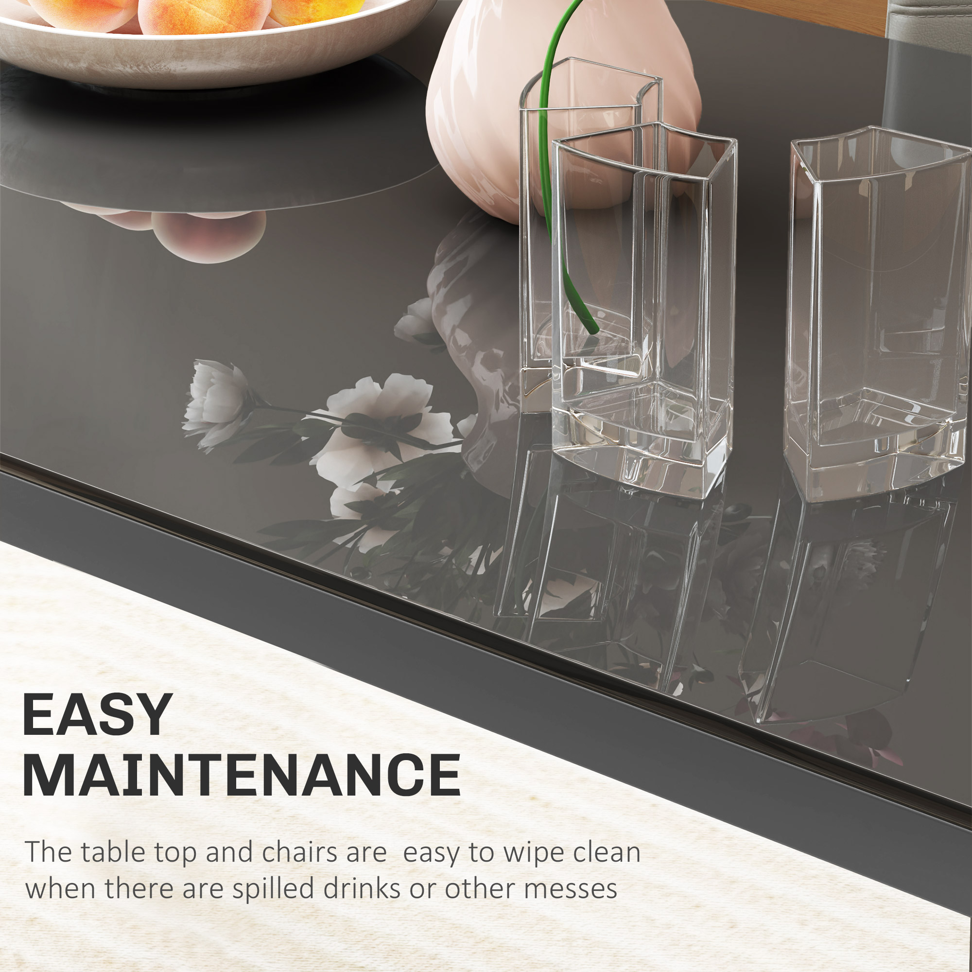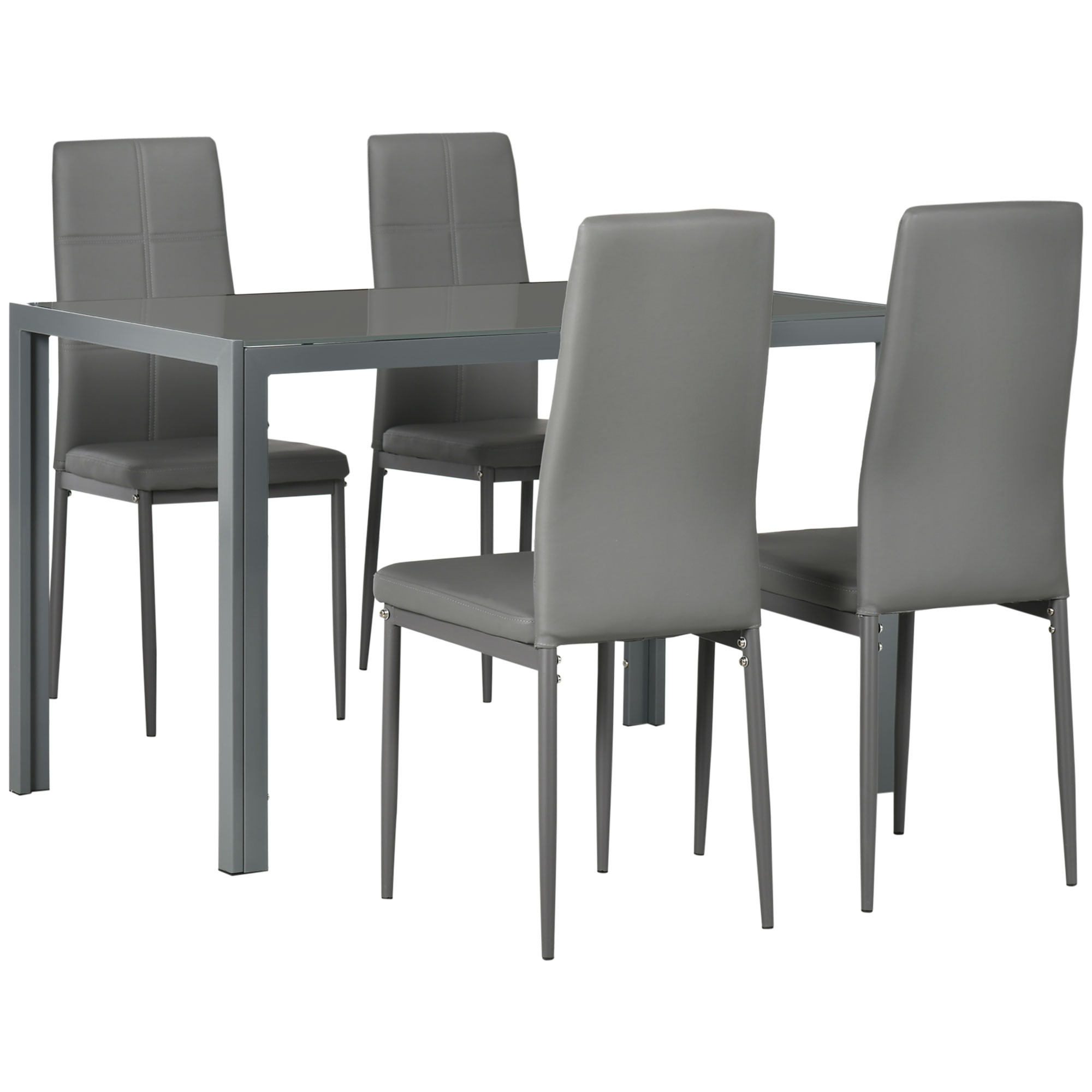 A centrepiece for catching up with friends: this set is a must for every home. Comes with a glass-top table and four tall back chairs - seats up to four. Padded seats for comfort, with faux leather upholstery for style. Metal legs are strong, keeping you supported as you sit. Gather round in style, whenever.