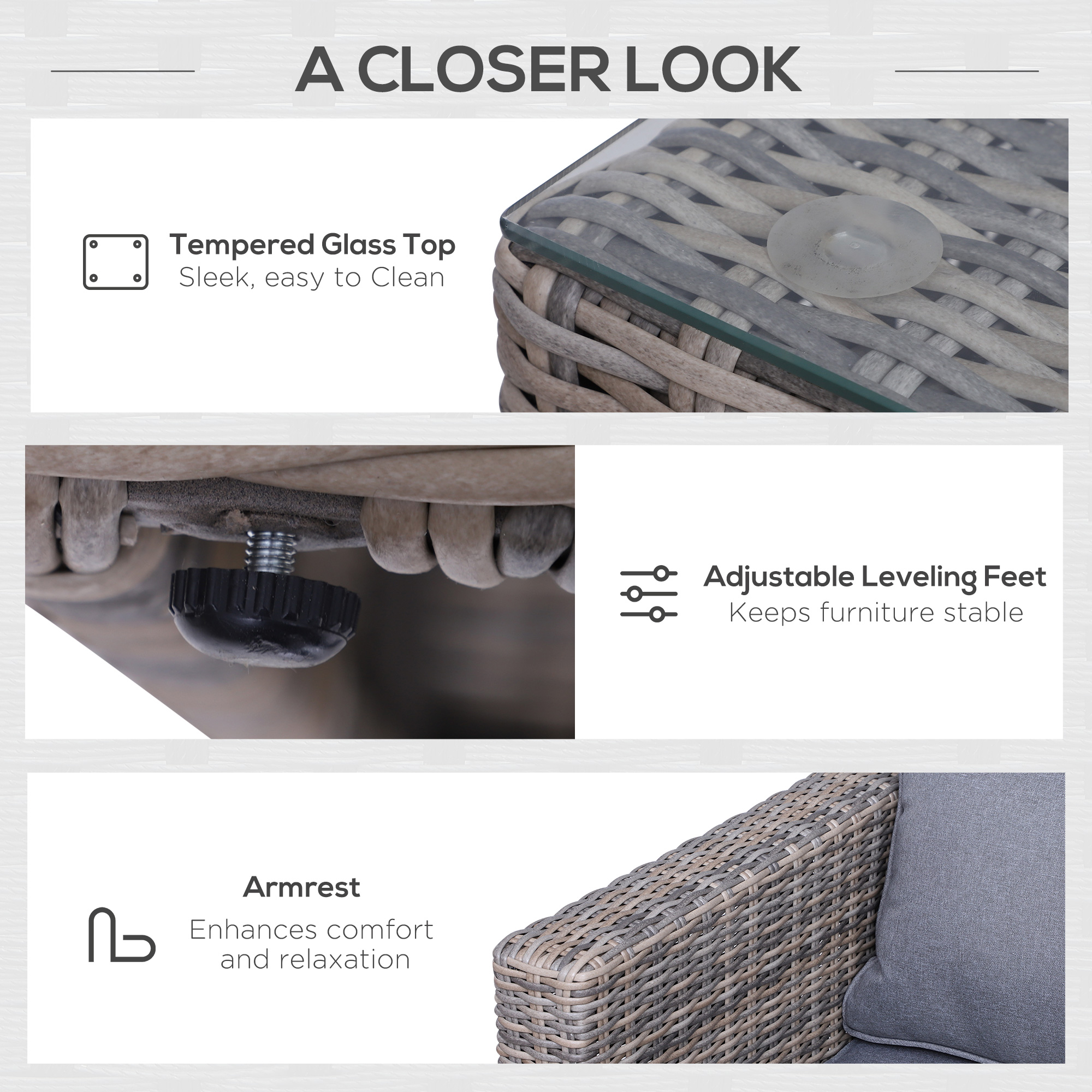 Look forward to those lazy afternoons ahead with this conservatory furniture set. Totalling five pieces, set comes with two corner chairs, two footstools and a tall table. The aluminium frame forms the base frame for a robust structure. Matching in height with the chairs, the square table is the perfect spot for keeping everything you need near, with a sleek glass tabletop to dine from.