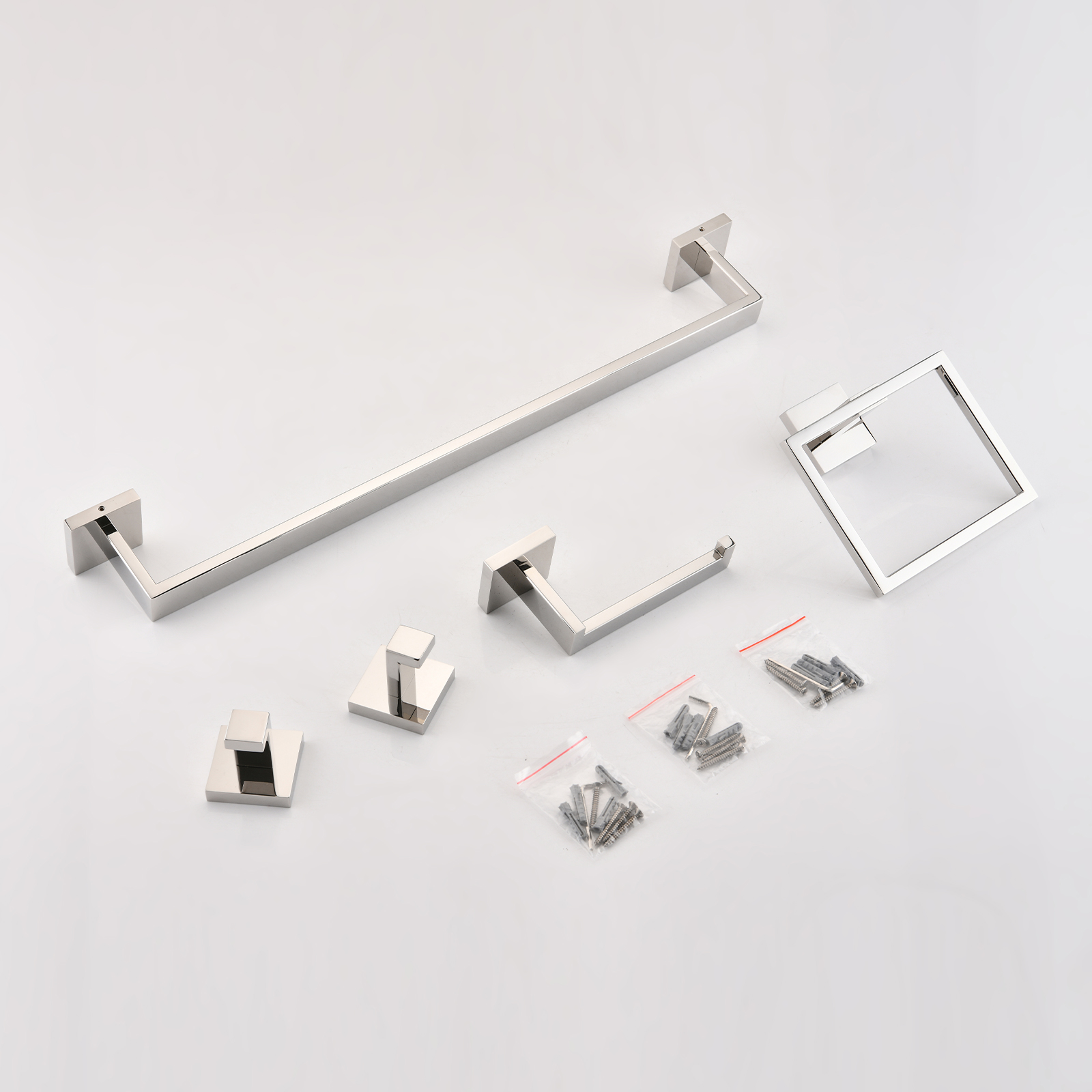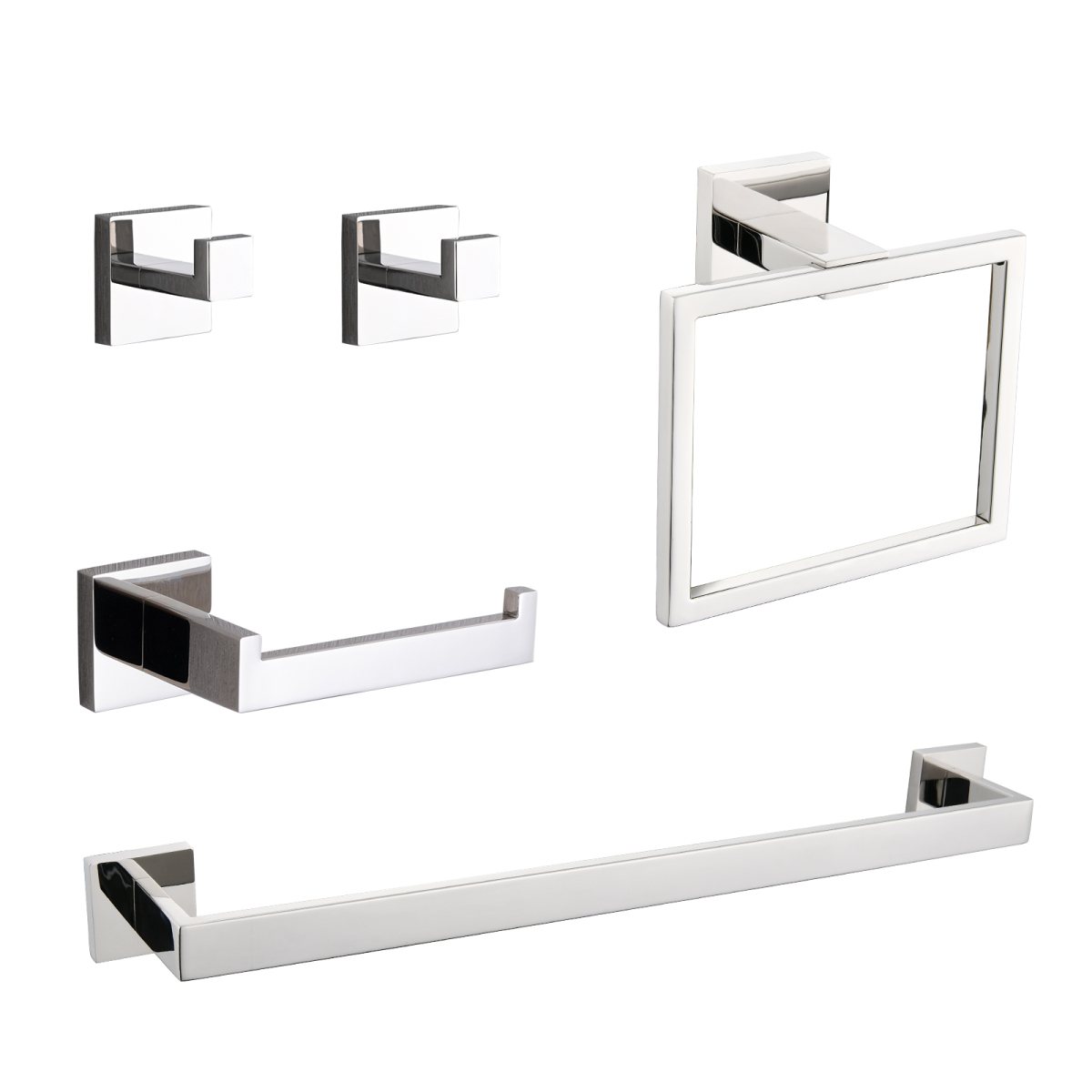Product Name:5-Piece SUS304 Bathroom Set: Towel Bar + Ring + Hooks + TP Holder, Brushed Finish