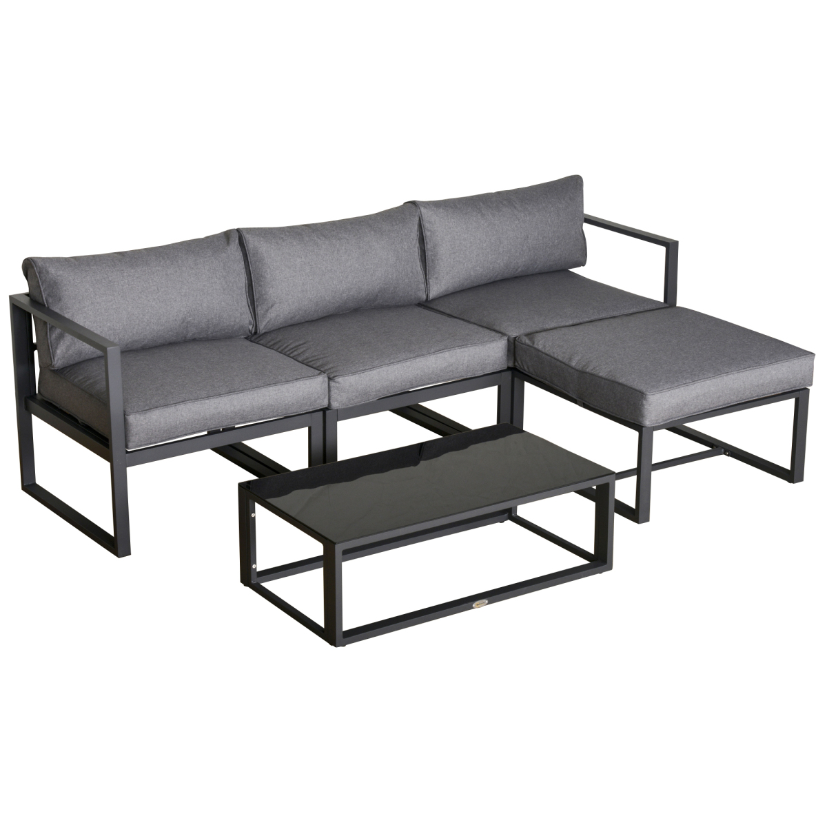 5 Pieces Outdoor Patio Furniture Set, Sofa Couch With Glass Coffee Table, Cushioned Chairs And Aluminum Tube, For Balcony Garden Backyard, Grey