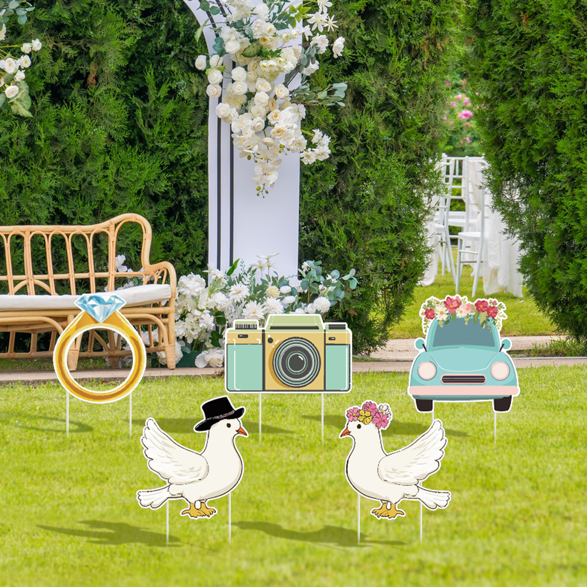 Wedding Party Decorations : The set of White wedding outdoor yard decor is very suit for wedding theme party for any season.