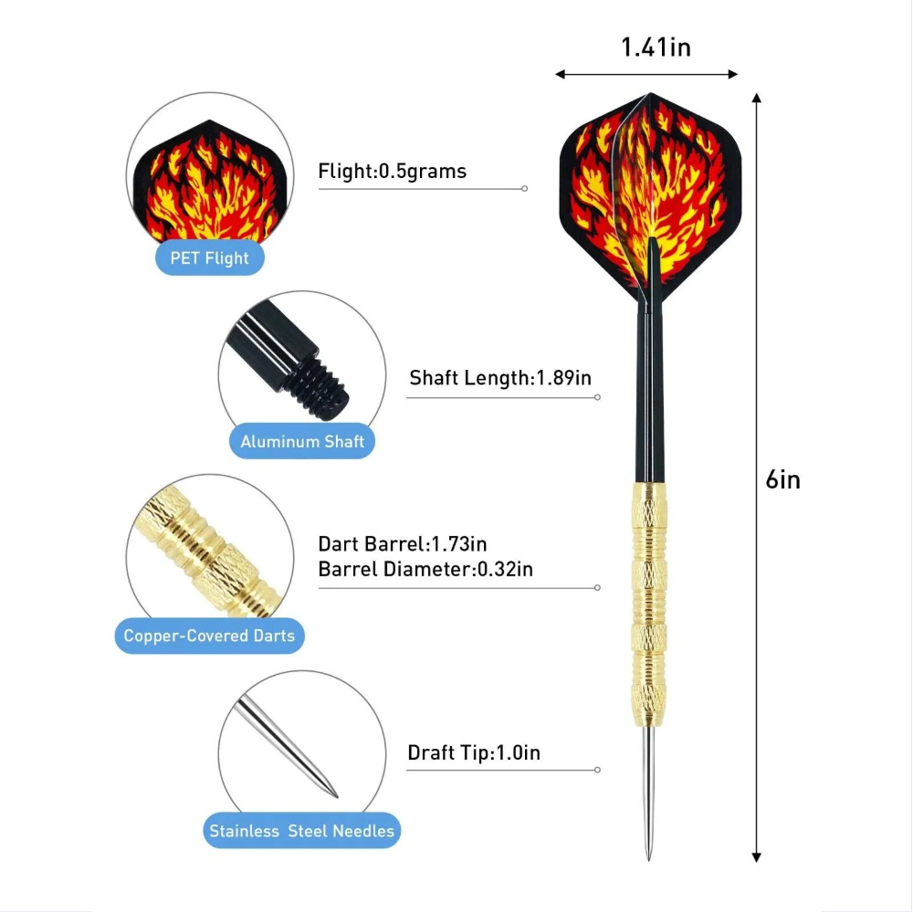 • Material: Stainless Steel Dart Tips + Copper-Covered Barrel + PVC Rods