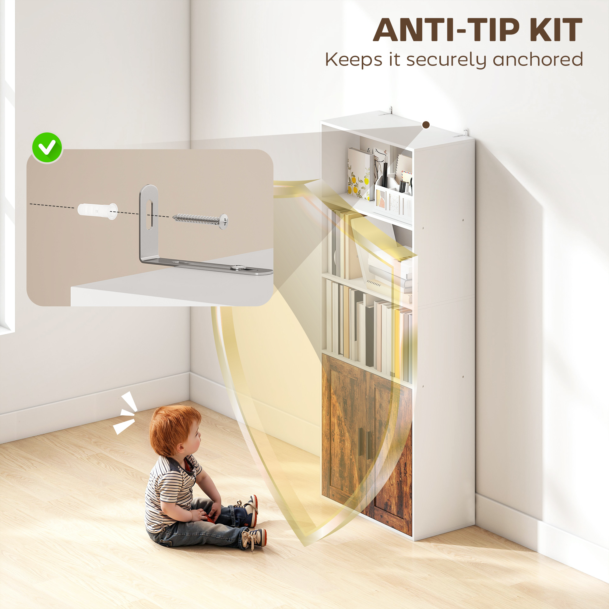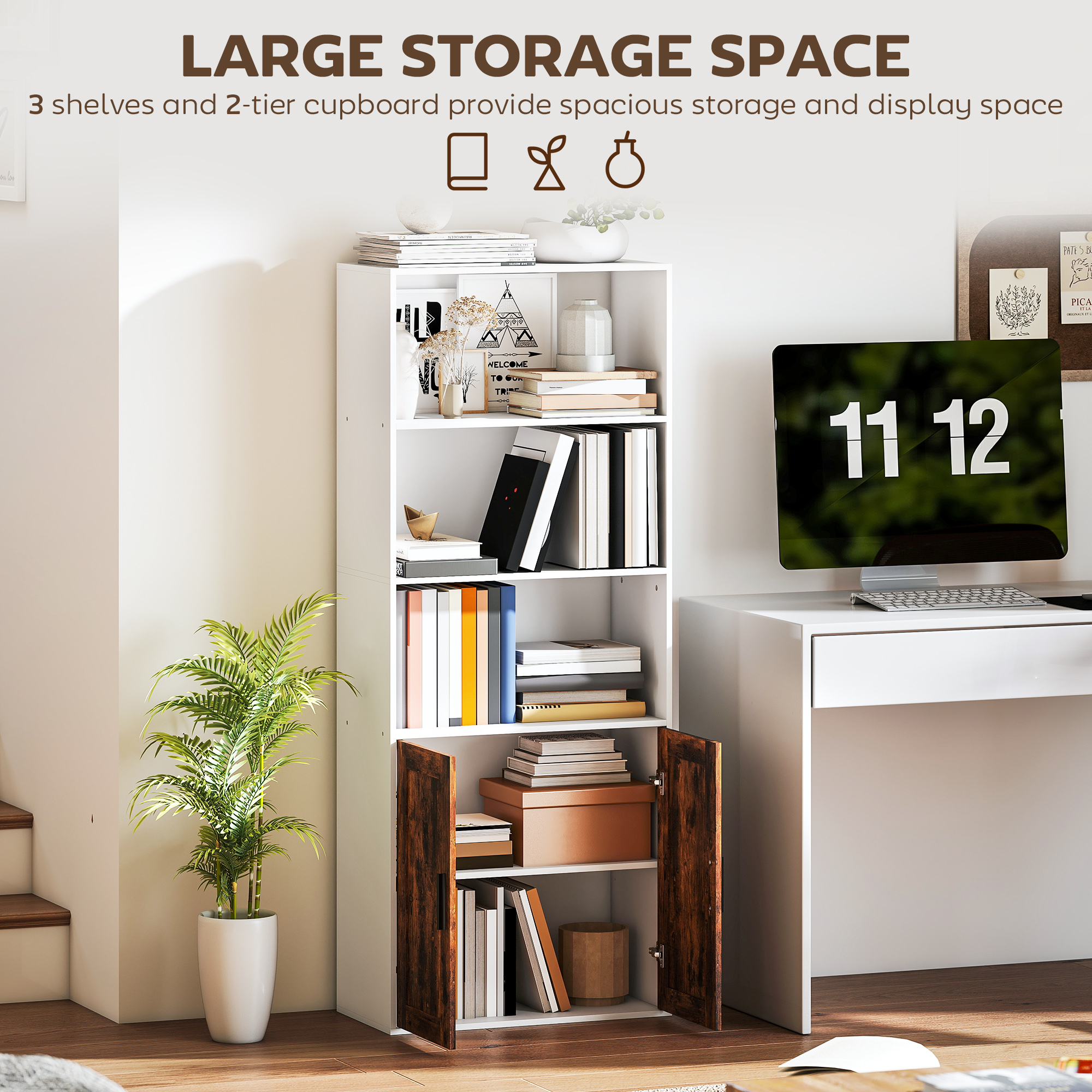 Transform your space with the bookcase, designed for both style and practicality. Struggling with clutter? Its open shelves and enclosed storage offer versatile organization for books, decor, or plants. Worried about safety? Anti-tip kit ensures stability, great for homes use. Need flexibility? Adjustable shelves accommodate items of all sizes, creating a tidy, personalized space for your home or office.