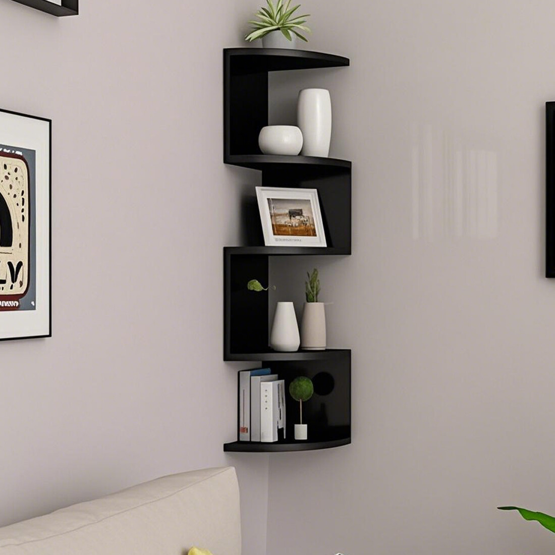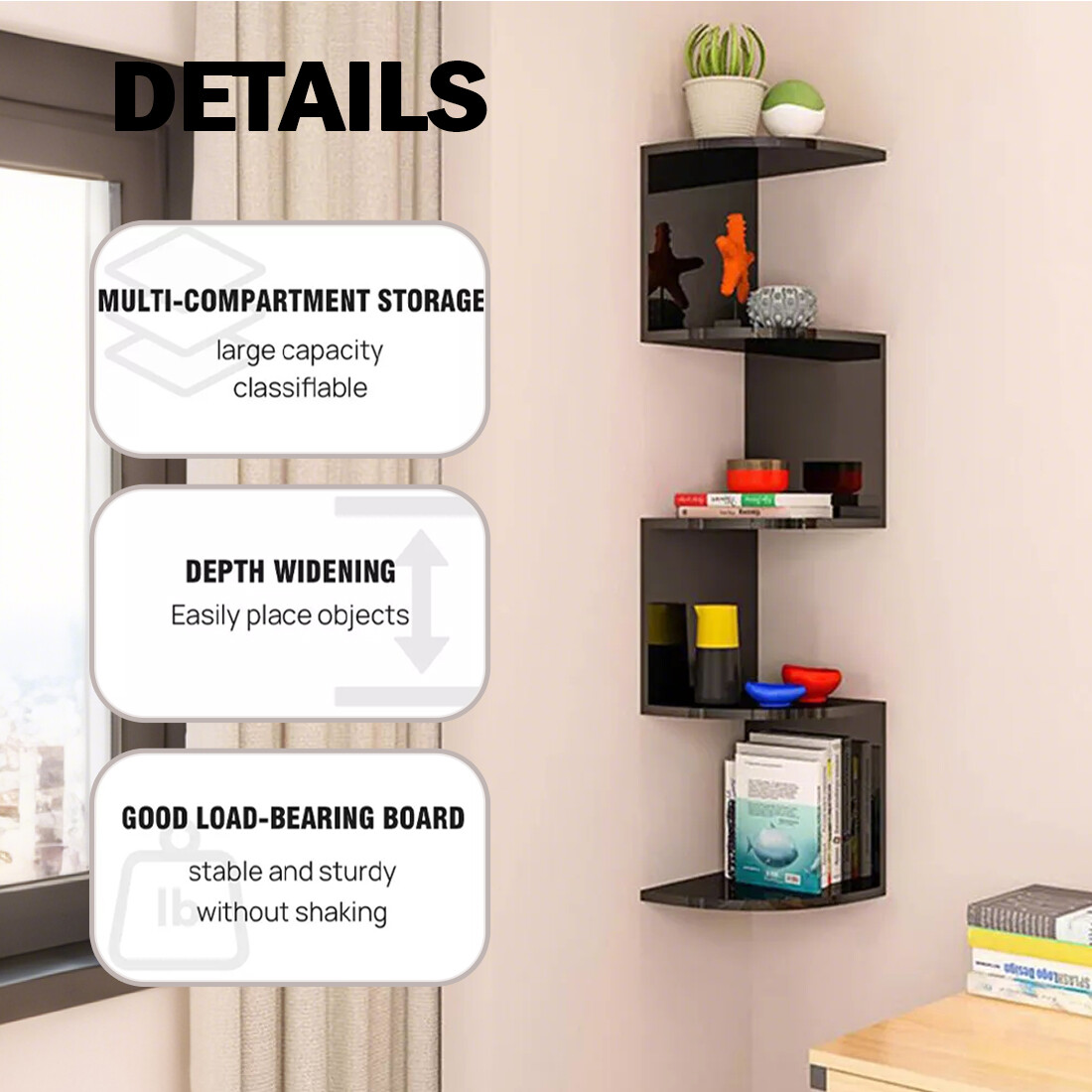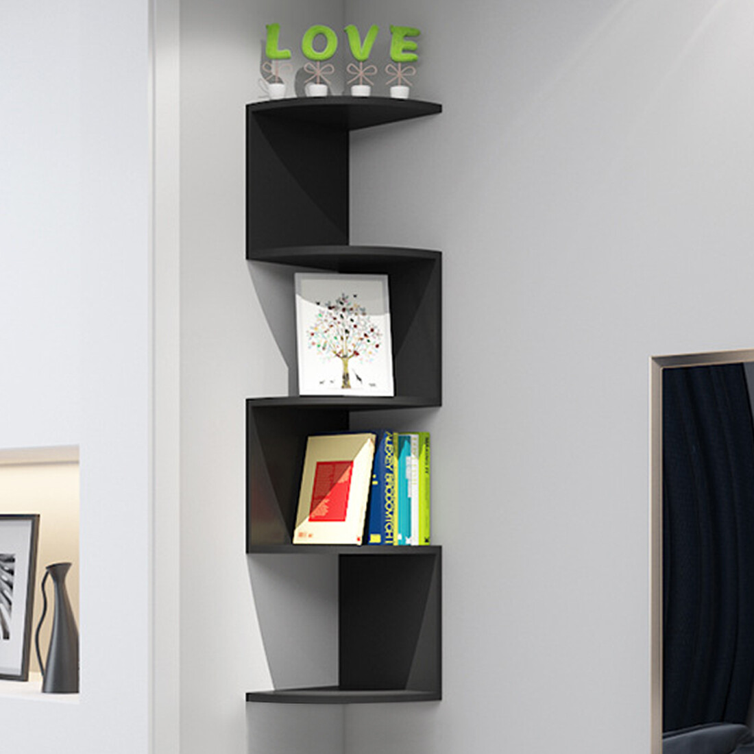 â¤What you get: A beautiful and practical storage rack with a unique zigzag shape that elegantly displays decorations in the corner of the living room, bedroom or study.