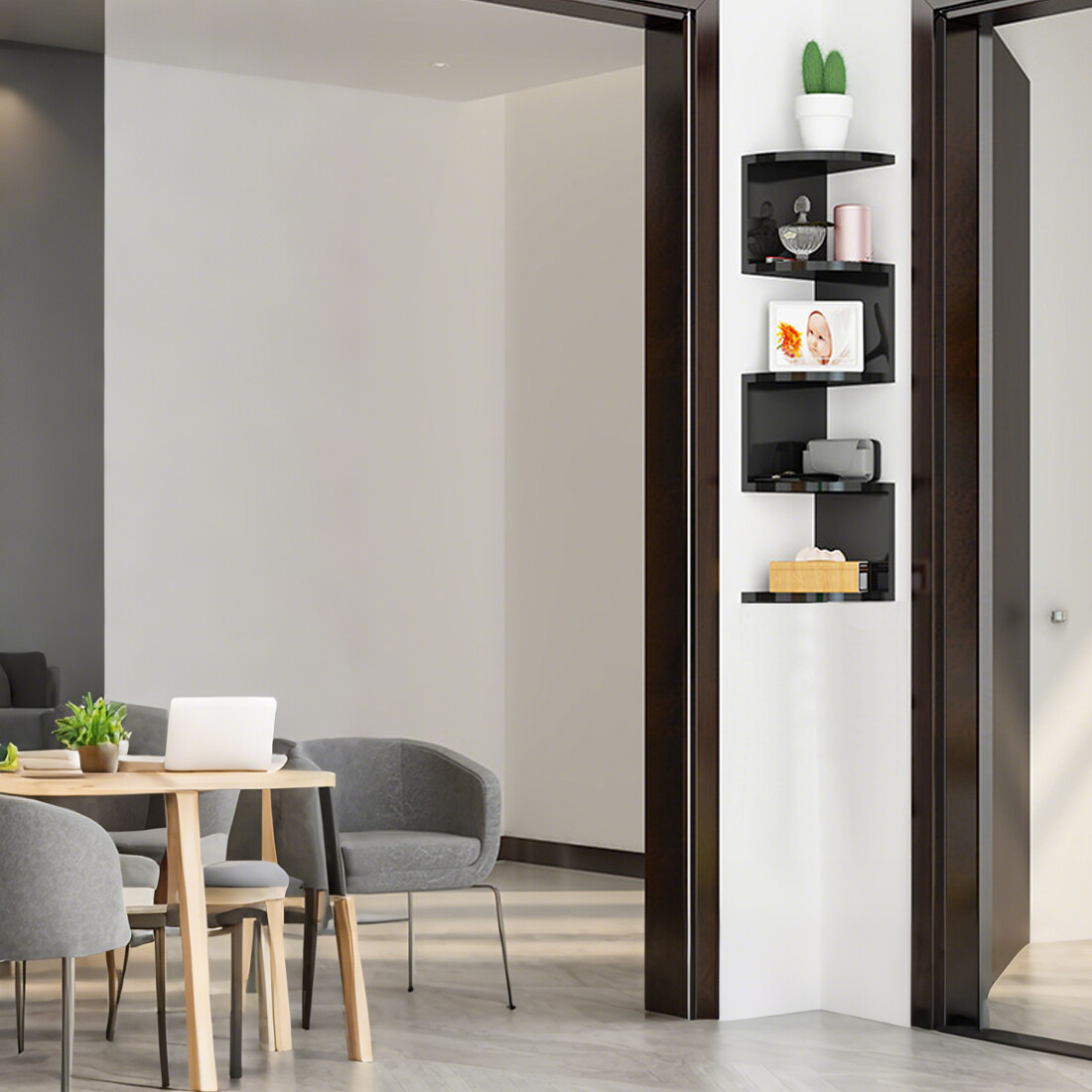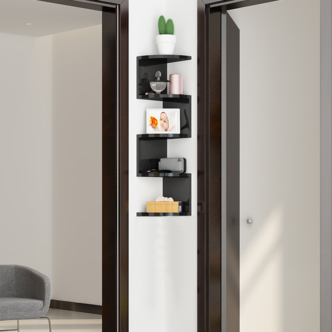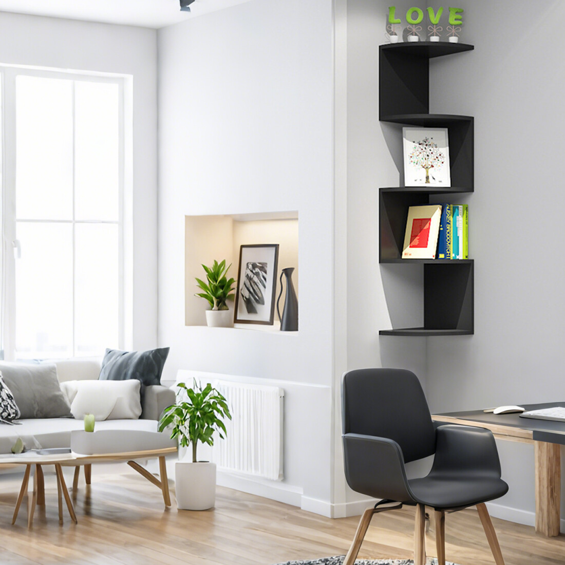 â¤What you get: A beautiful and practical storage rack with a unique zigzag shape that elegantly displays decorations in the corner of the living room, bedroom or study.