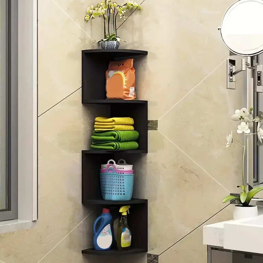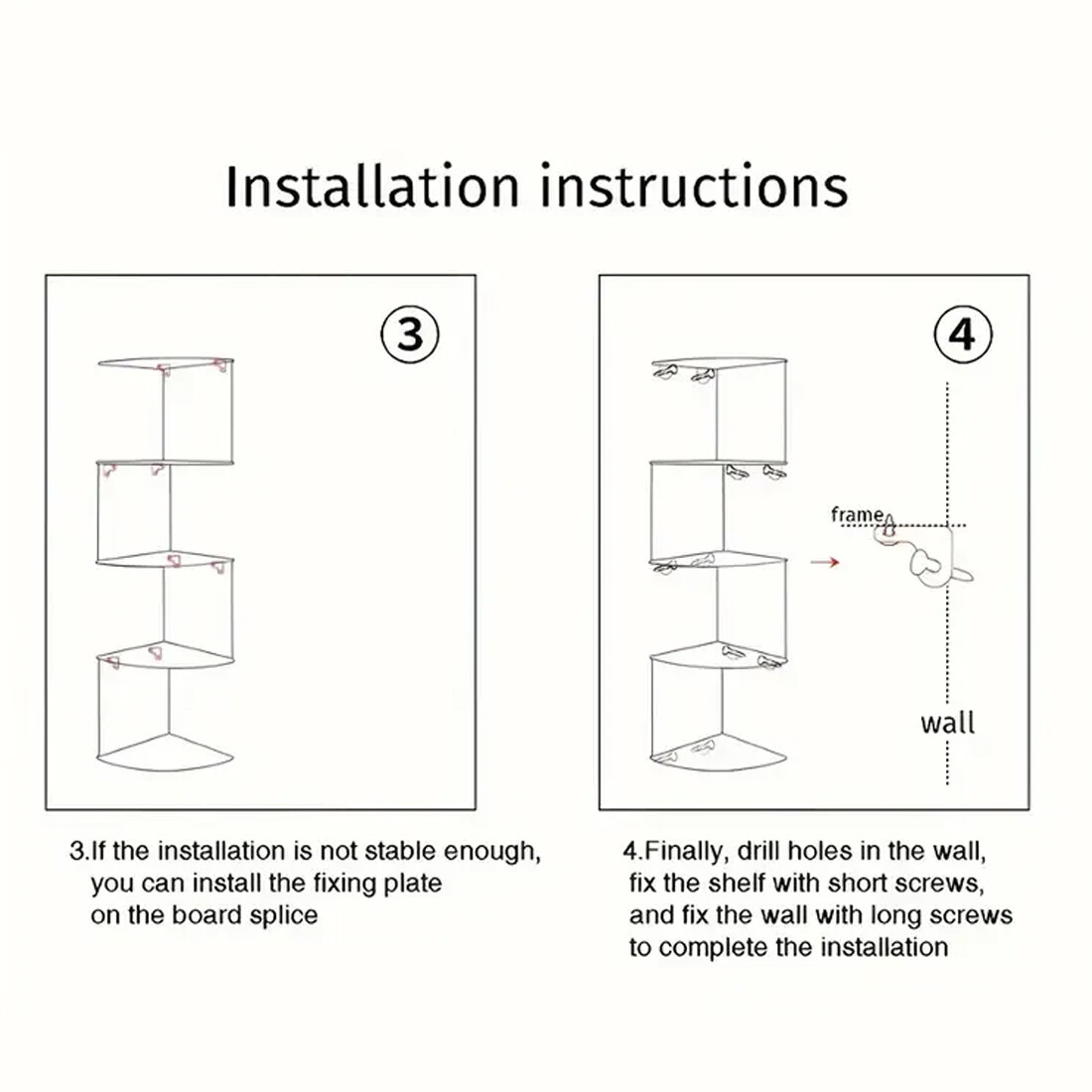 â¤Safe and firm: 2 back panels are connected to two adjacent walls, making the overall structure more stable and increasing the load-bearing capacity of the shelf (2 kg/layer). You don't have to worry about it falling accidentally.