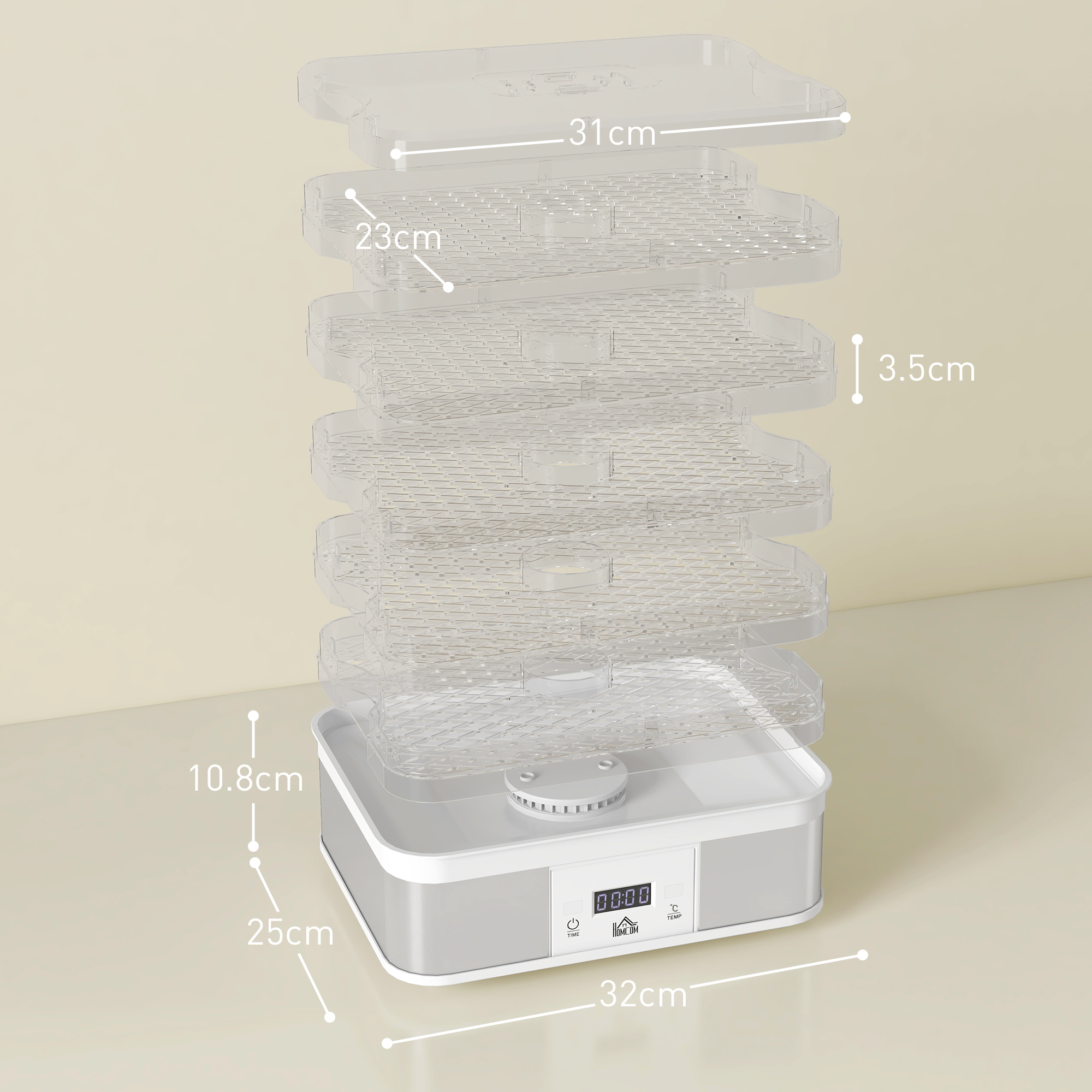 Dehydrate fruit, vegetables and other ingredients for whatever you need, thanks to this fruit dehydrator. The easy-to-adjust temperature range, between 40-70℃, makes the food dehydrator machine to dry at a temperature which is right for specific foods. Five trays are included to hold lots of food inside and separate them hygienically. Set the timer between 1-48 hours so you can leave it to do it's magic, complete with an LCD display to see and change the settings easily.