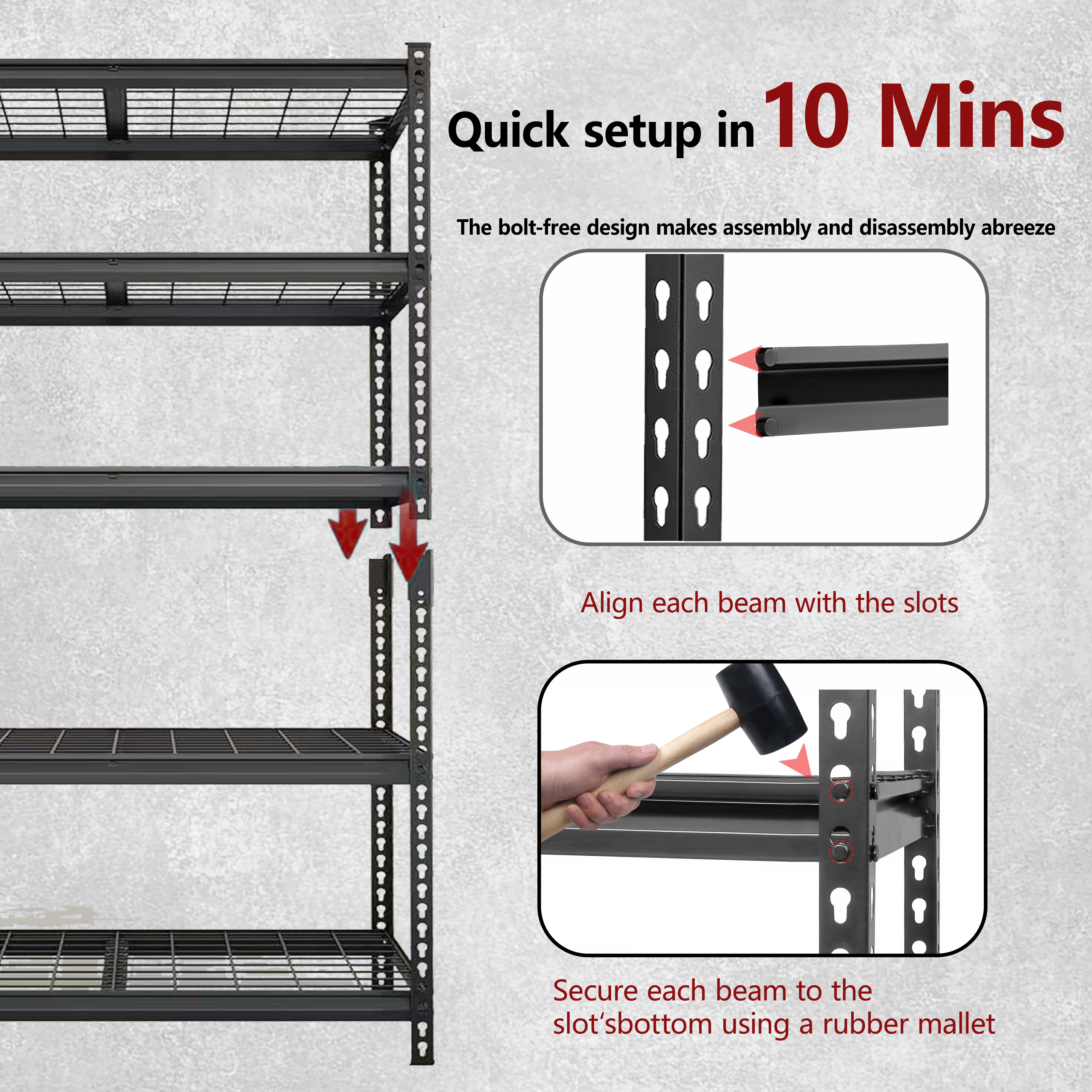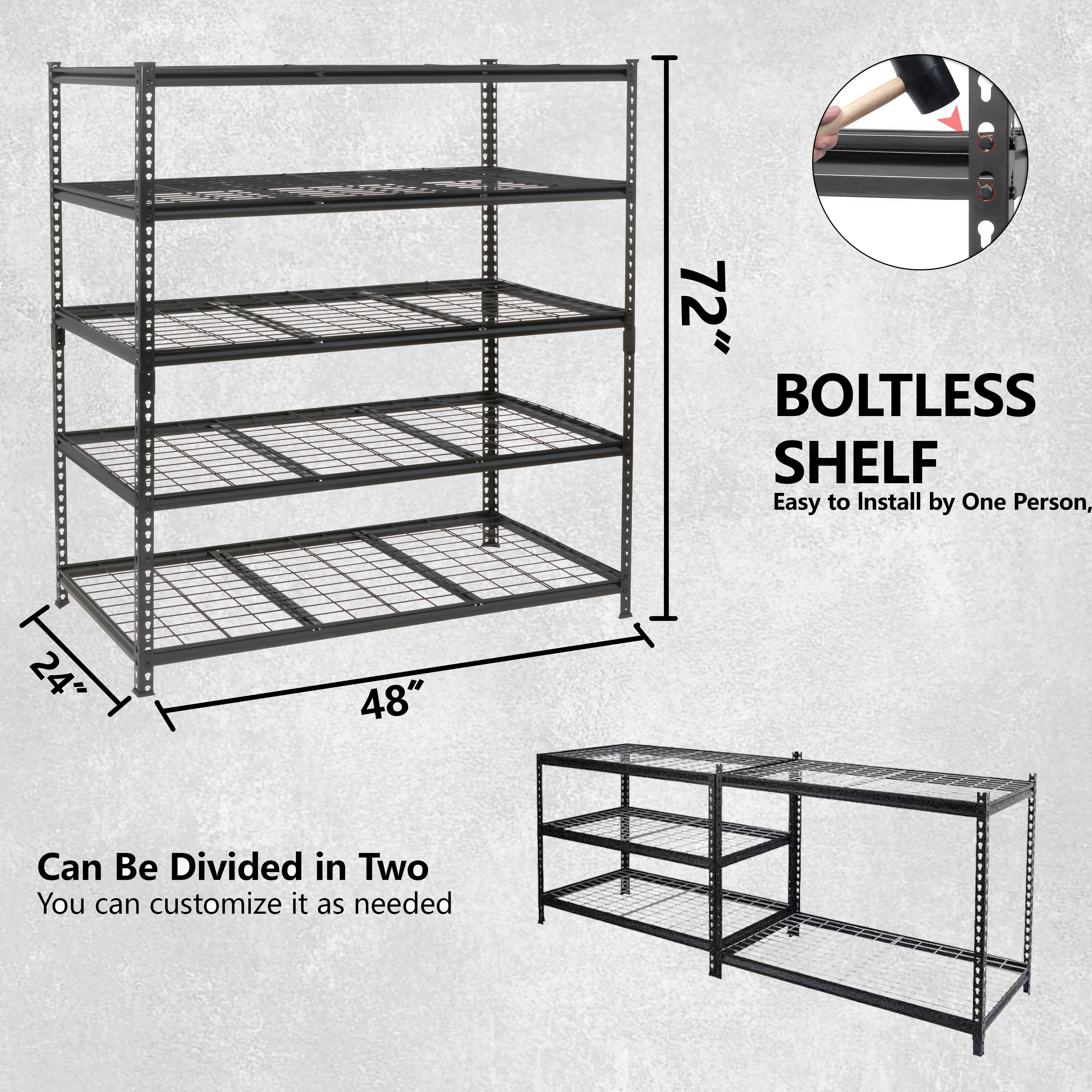 Product Name:5-Tier Heavy Duty Metal Shelving Unit, 48"W x 24"D x72"H, Adiustable Storage Rack, Boltless Assembly, 4000 lbs Total Load Capacity, for Garage,Basement,Warehouse.Workshop, Black