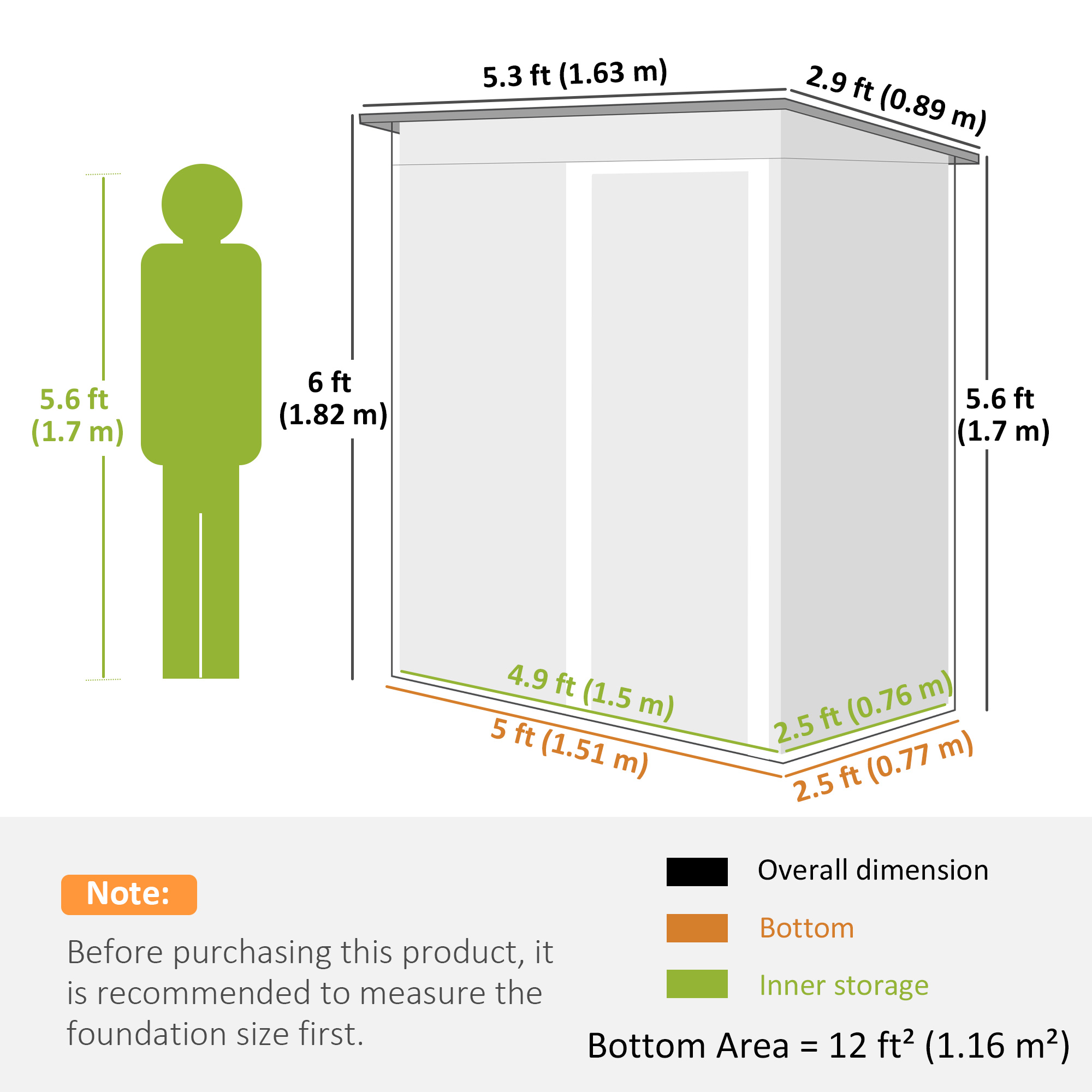 Small-medium tools and equipment easily stored with this outdoor storage shed. The 76 x 150cm inner storage is accessed easily with the single sliding door: pull it to open/close easily. Made from galvanised steel, this metal storage shed is strong and suitable for year-round outdoor use. With a sloped roof, they'll be as little water build-up on the roof, helping to preventing leaking through to inside.