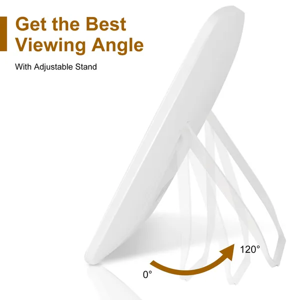 *Thoughtful Gift*:The folding bracket enables you to get the best viewing angle from 0º to 120º. The small size of 5.98x8.62x0.94in makes this lighted vanity mirror convenient for travelling. A thoughtful gift for wife,girlfriend,mother,sister,friends and makeup artists etc.,especially a perfect gift choice for Valentine’s Day!