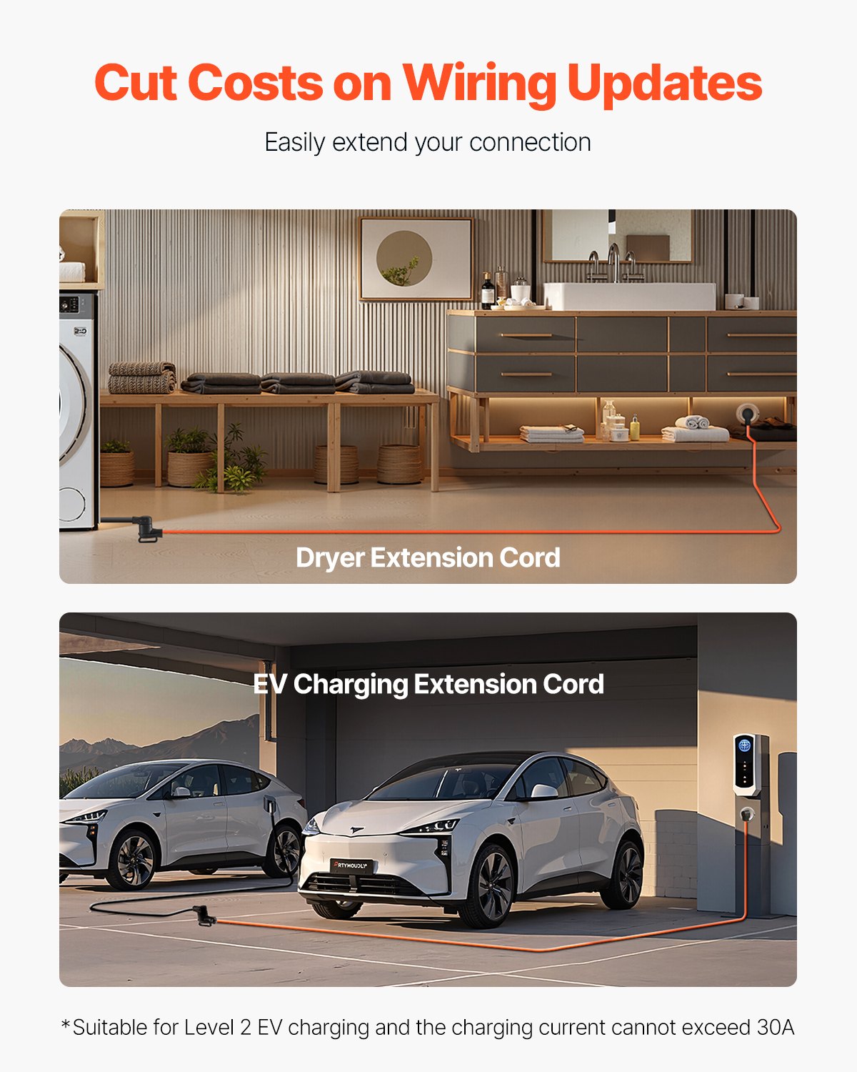 50 Ft Dryer Extension Cord 4-Prong NEMA 14-30P To 14-30R Dryer Cord 30A