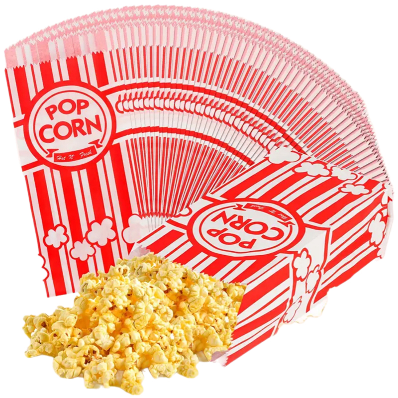 50 Pcs Popcorn Bags Individual Servings Red And White Stripes Paper Popcorn Food Bags