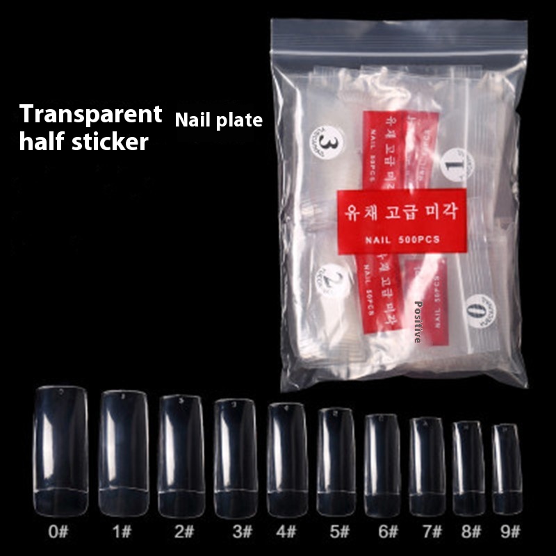 500 Pieces Sheer Full Cover Transparent Semi-nail Sticky Fake Nails