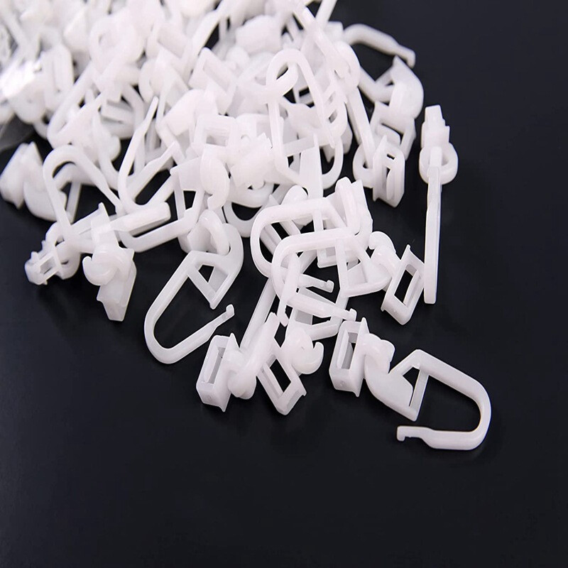 --Plastic curtain hooks are small, lightweight hooks made from plastic material used to hang curtains and drapes. These hooks are designed to attach to the header of the curtain or drapery, allowing them to be easily hung from a curtain rod or rail. Plastic curtain hooks are commonly used as an alternative to metal hooks, especially in situations where a lightweight and rust-resistant option is preferred.