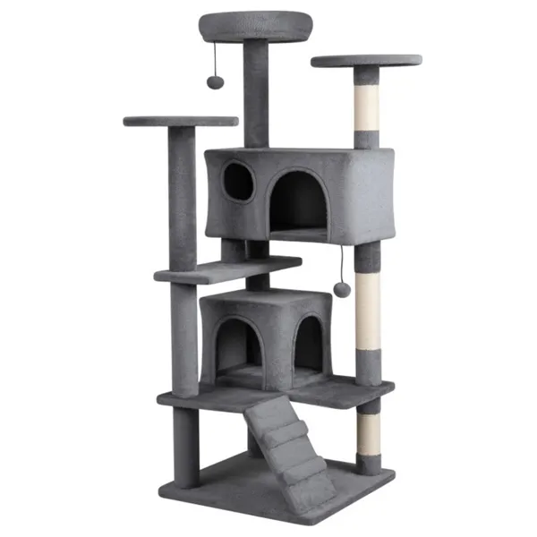 • Ultimate Cat Lounge Experience: This cat tree includes a large top perch and 2 round platforms for relaxing, observing, and enjoying the feeling of being up high. Plus, 2 roomy condos provide comfy and private spots to rest, hide, and feel secure. • Built-in Claw Maintenance Zone: This cat tower is equipped with sturdy sisal scratching posts for cats to scratch and maintain healthy claws. Moreover, each post is wrapped in natural sisal rope for safety and maximum durability. • Stable Cat Tower Framework: An included anti-toppling device secures this cat furniture to the wall, along with a wide base, giving you peace of mind and preventing unexpected tipping during energetic playtime or multiple cat activity. • Ultra-Plush Comfort Design: Every platform and the thickly padded top perch of this kitten furniture are covered in ultra-soft, skin-friendly plush fabric. Your cat will love lounging, jumping, and sleeping on these gentle, supportive surfaces all day long. • Towering Multi-Cat Playground: Standing at 52"tall, this cat tree tower offers multiple platforms, perfect for homes with several cats. Additionally, the included plush dangling balls and bottom climbing ladder provide extra entertainment.