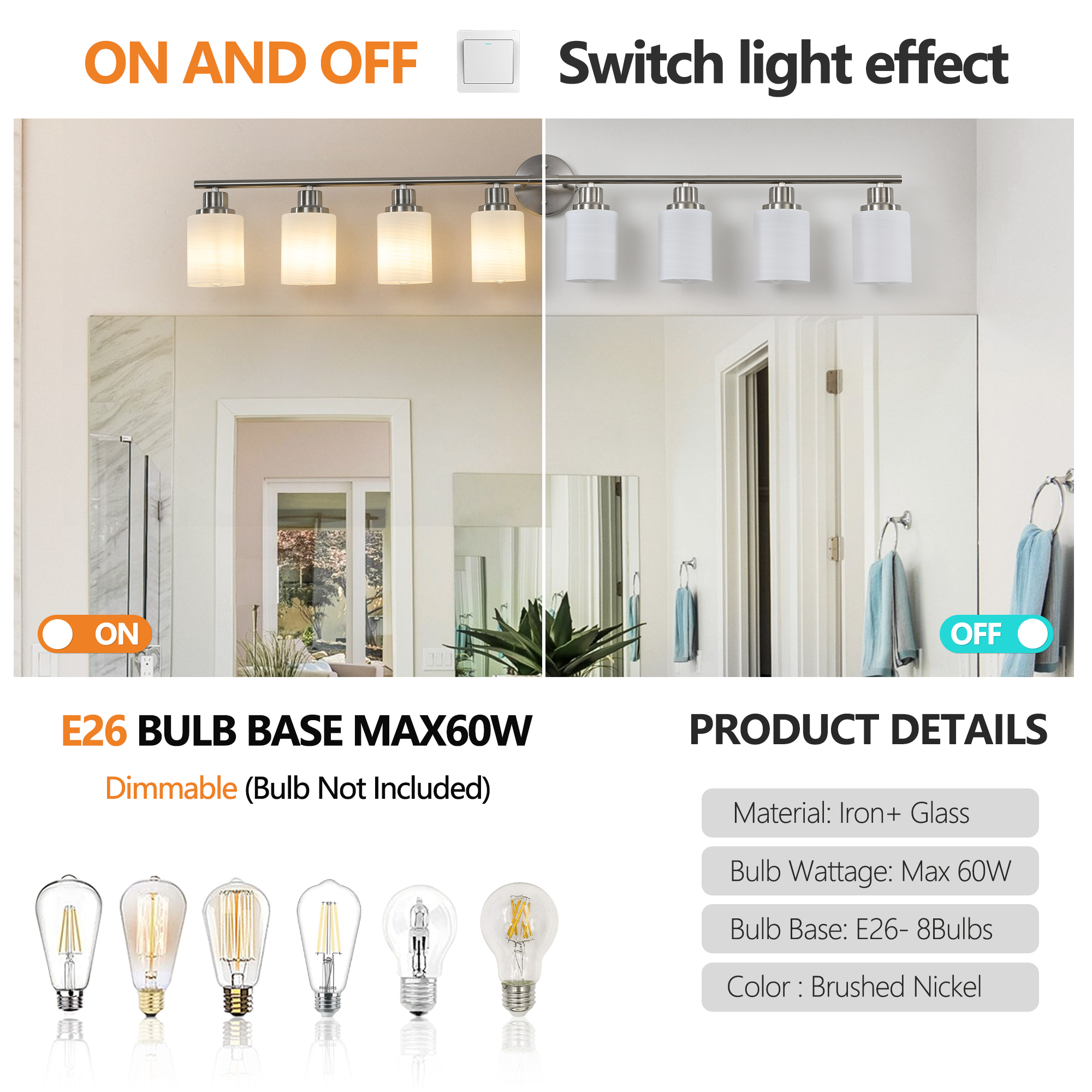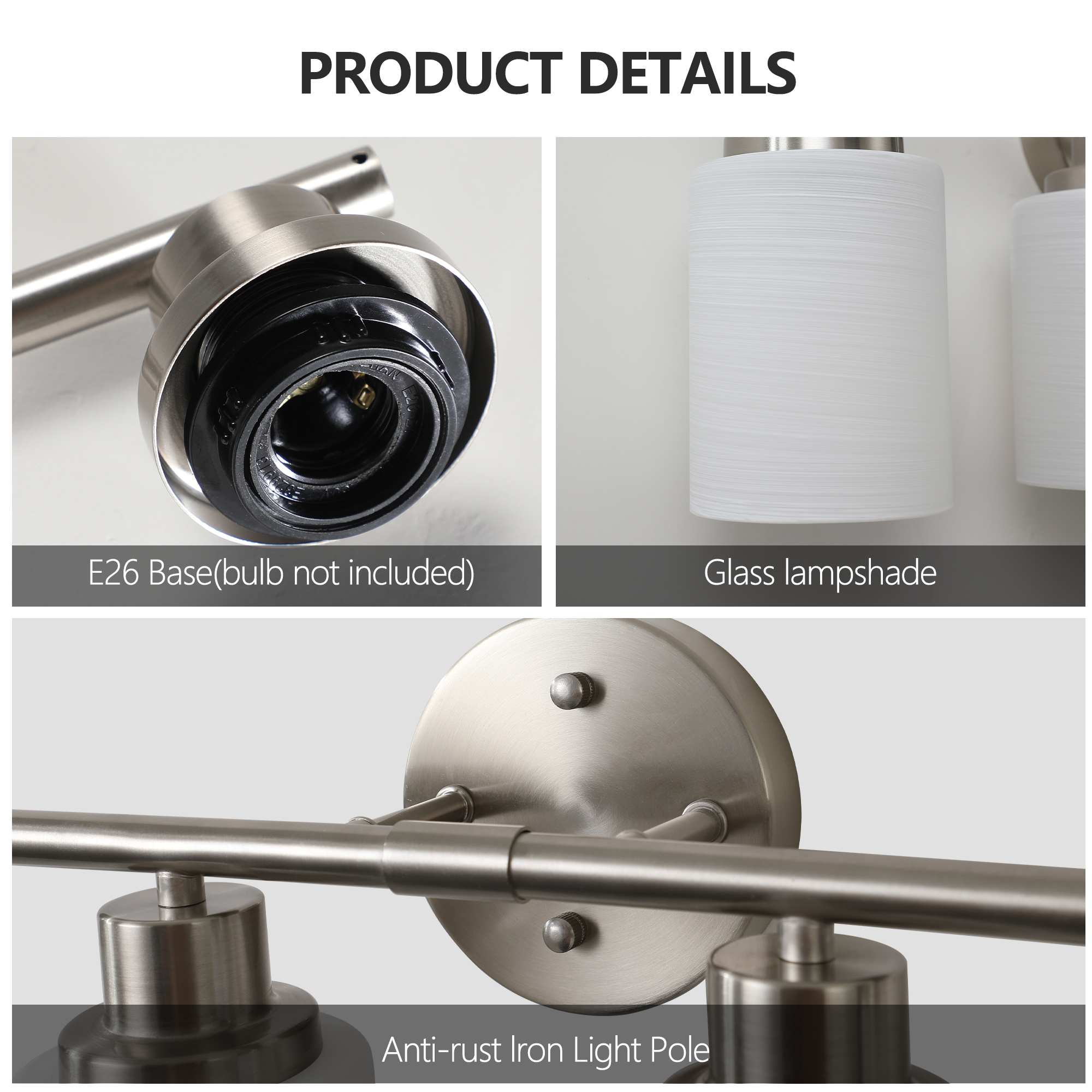 Modern minimalist design: With clean lines and a simple look, it is suitable for the bathroom, hallway or bedroom decoration of a modern home.Durable material: The light frame made of brushed nickel is not only beautiful, but also has the characteristics of rust resistance and corrosion resistance, which increases the service life of the product.Frosted glass lamp shade: Soft light through frosted glass to avoid harsh light and provide a comfortable lighting effect.Multi-scene application: can be used as a bathroom mirror headlight, corridor wall light, or decorative room wall lighting, diversified functions.Easy installation: Comes with all the necessary installation hardware, simplifies the installation steps, and is suitable for quick installation by DIY home users.